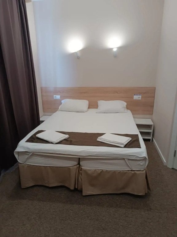 В номере одна двуспальная кровать (две односпальные кровати), ТВ, душ, туалет, стол, окно во двор, Wi-fi.