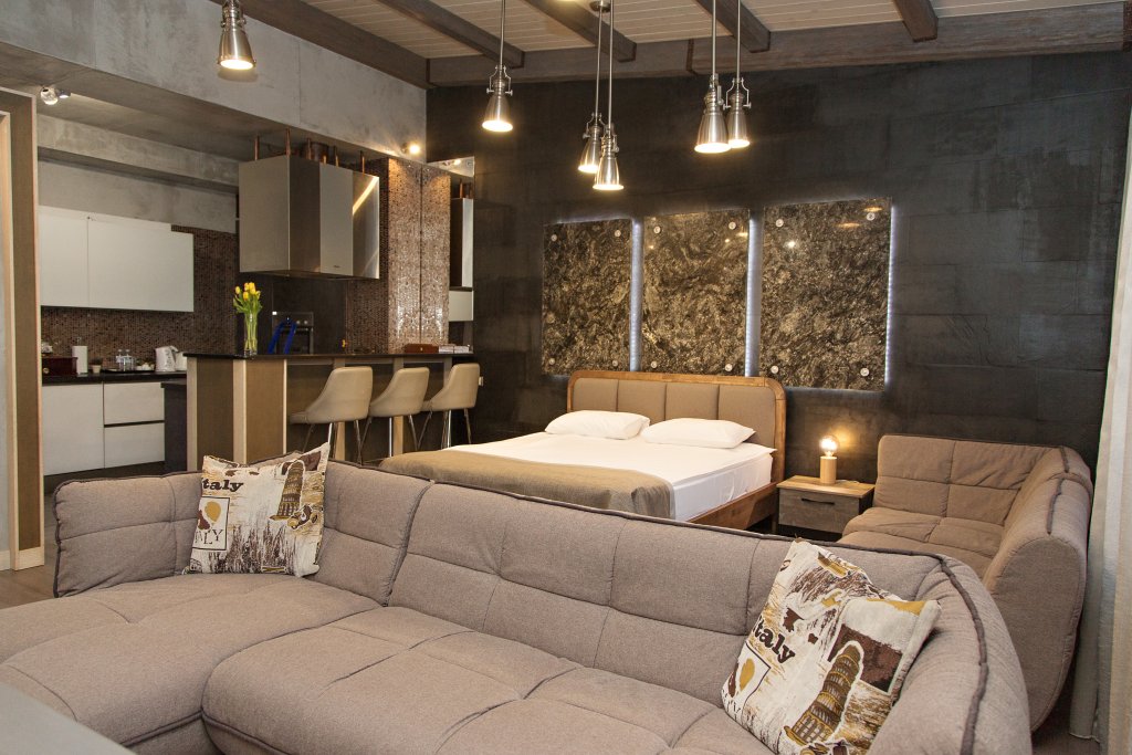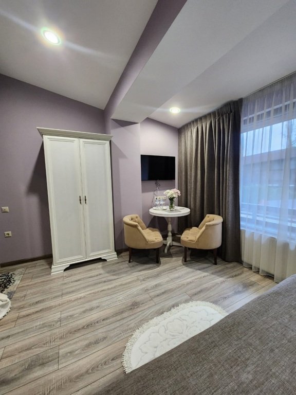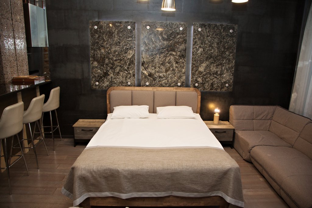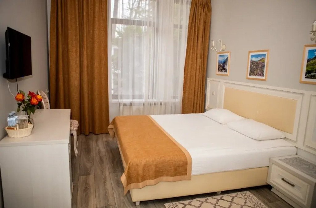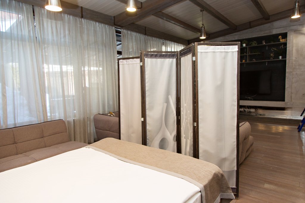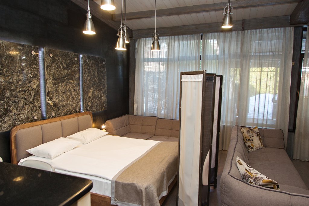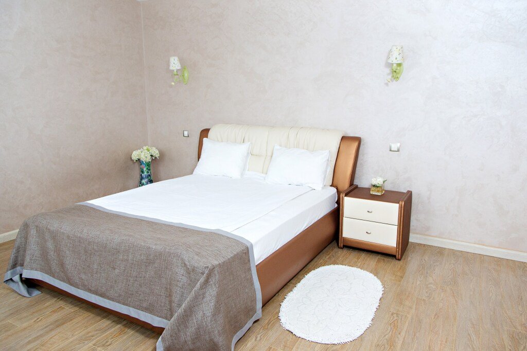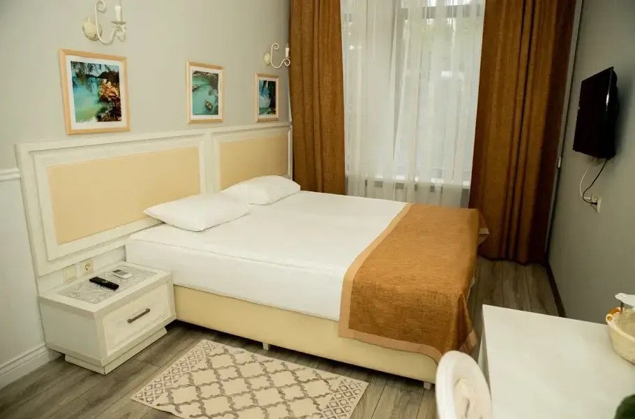 Номер просторный со светлым интерьером и мягкой ортопедической кроватью даст возможность отдохнуть и перезагрузится. А ванная комната с авторской мебелью останется в вашей памяти на долго.