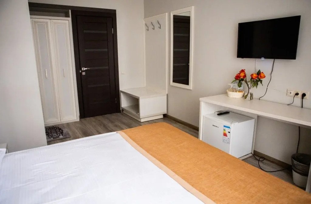Уютный однокомнатный номер для двоих в гостевом доме Sport Point в теплых тонах позволит насладиться всеми плюсами отдыха в Новогорске. Современная мебель и приятный дизайн придутся по вкусу как парам, приехавшим отдохнуть в Sport Point