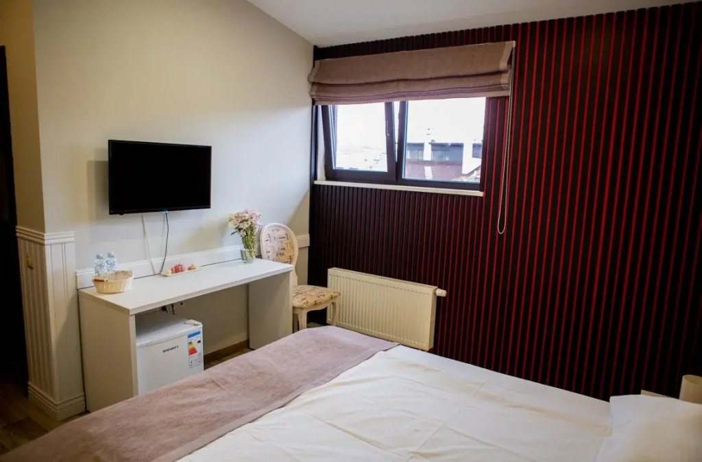 Номер оснащен телевизором, кондиционером, тапочками, ванными принадлежностями, питьевой водой.