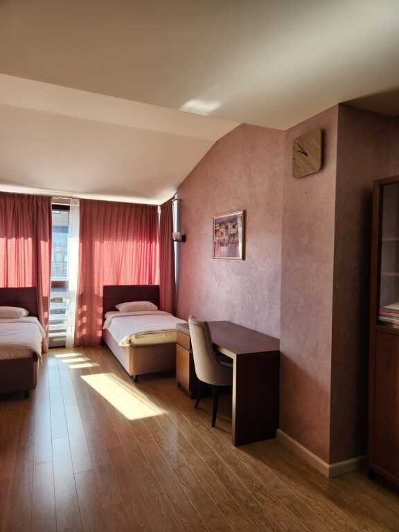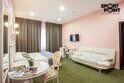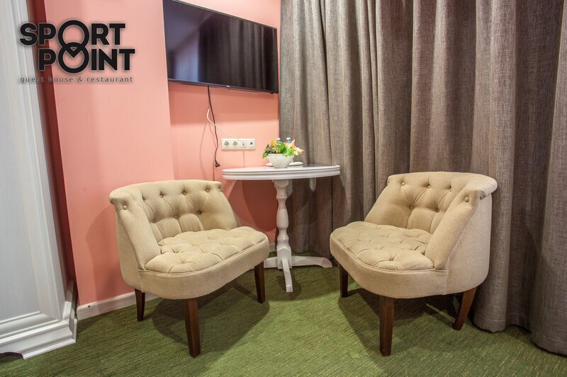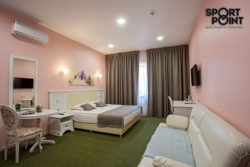 Просторный номер в нежно-розовом цвете подарит Вам чудесный отдых в «Олимпийской деревне Новогорск». Все номера гостевого дома Sport Point обработаны специальным звукоизоляционным материалом, поэтому Вы сможете полностью расслабиться.