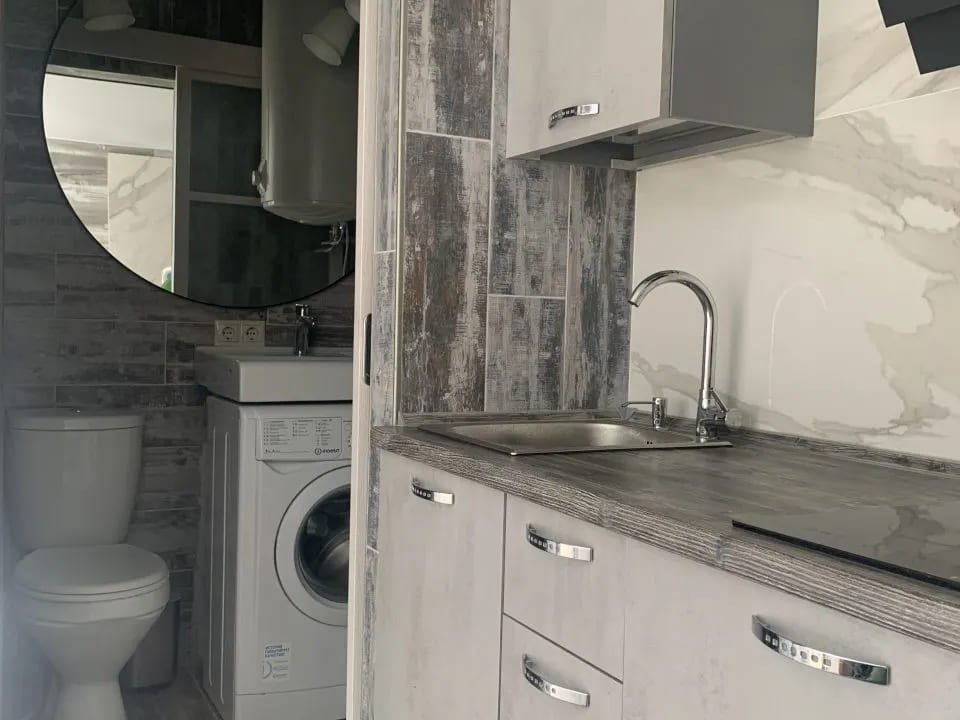 Комфортабельная миниатюрная студия на 1 Гостя обустроена диваном-кроватью, кухней, стиральной машиной и Wi-Fi. На кухне установлен холодильник, плита, чайник, микроволновая печь, посуда. Ванная комната совмещена с туалетом, оборудована душевой кабиной. На ухоженной территории есть парковка и мангальная зона.В номере