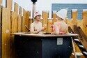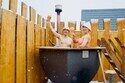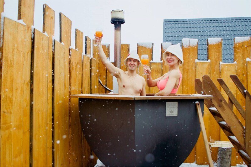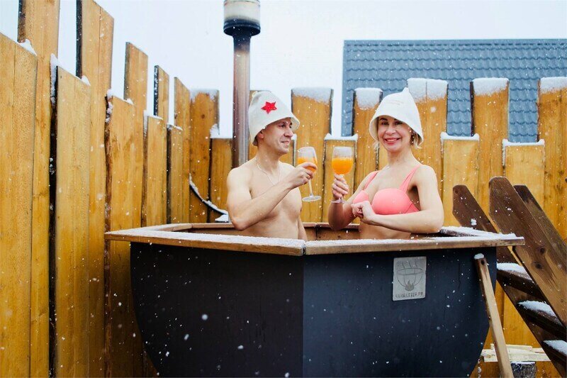 Вода в чане нагревается до t 38-41° С. Такая термальная терапия расслабляет мышцы, лечит суставы, раскрывает поры и выводит токсины. Рекомендуется добавлять отвары трав, дубильных веществ дубового и березового веников.