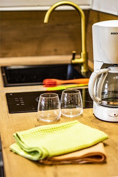 Двухспальная кровать, диван, с/у с душем, кухонная зона, ТВ