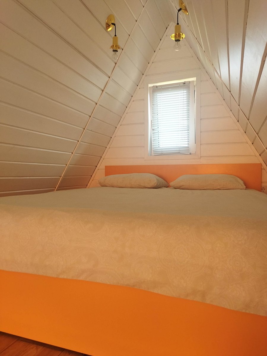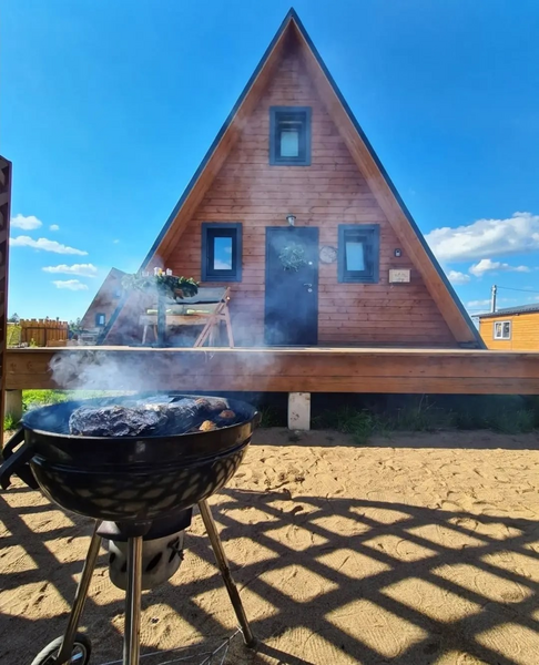 Коттедж «Лето» — новый 4-хместный дизайнерский коттедж(А-frame), оформленный в летних цветовых тонах с двуспальной кроватью и раскладным диваном. Бесплатная парковка, Wi-fi, беседки для барбекю.