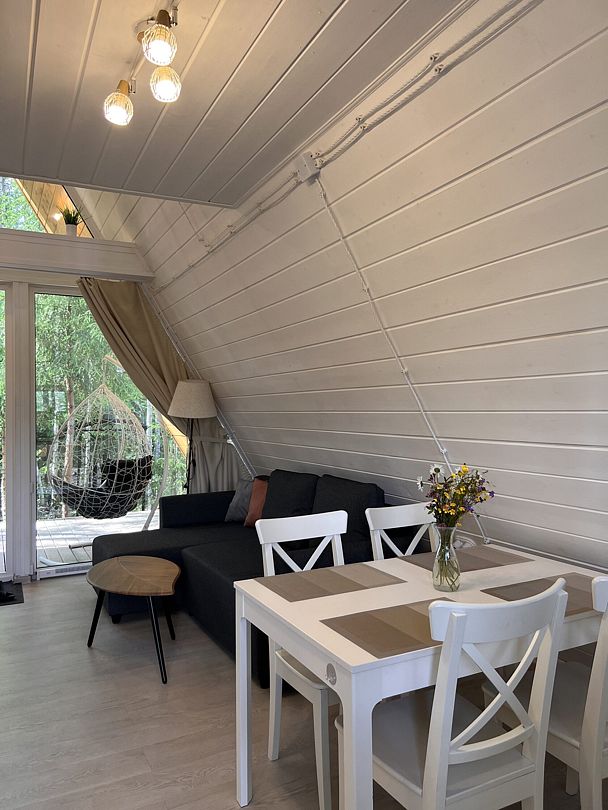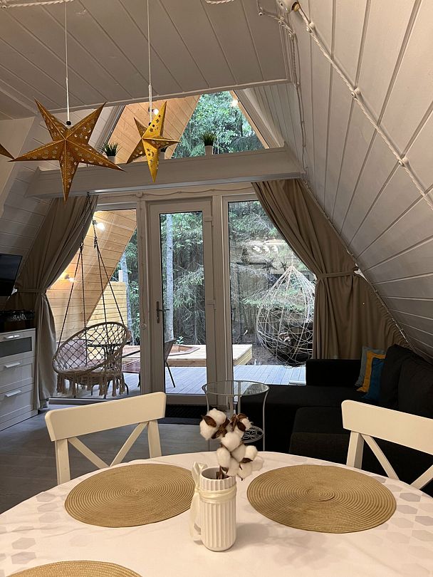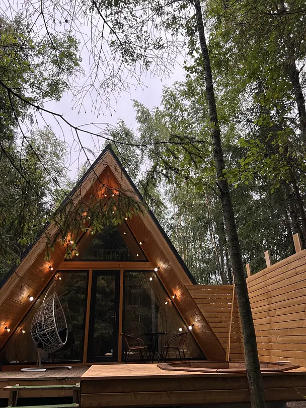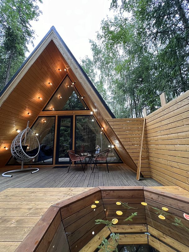 Уютные гостевые домики находятся в поселке Хиттолоярви, всего в 40 км от Санкт-Петербурга. Приблизительно в 600 м от домиков расположено живописное озеро Мадалаярви. Восемь А-фреймов, каждый из которых рассчитан на проживание от 2 до 4 человек, имеют свою террасу с мангалом и зоной отдыха. В каждом из домов имеется кухня, оборудованная бытовой техникой и набором посуды, телевизор, Wi-Fi, панорамные окна с видом на лес, современный санузел с душем.