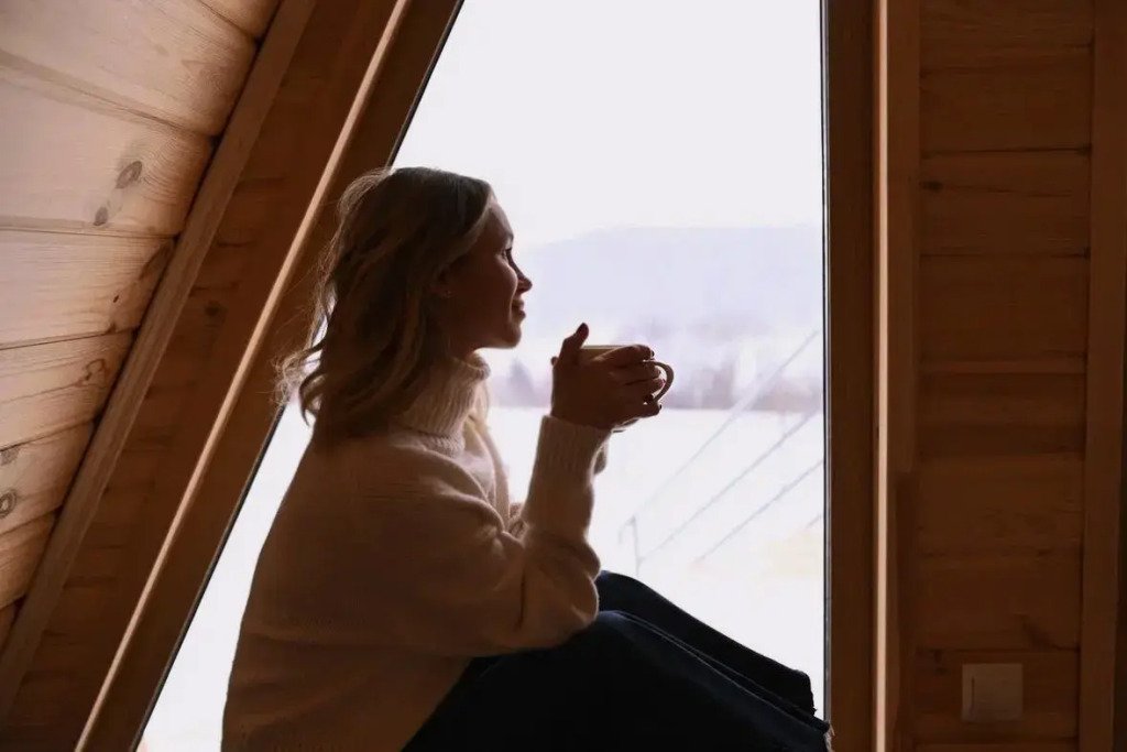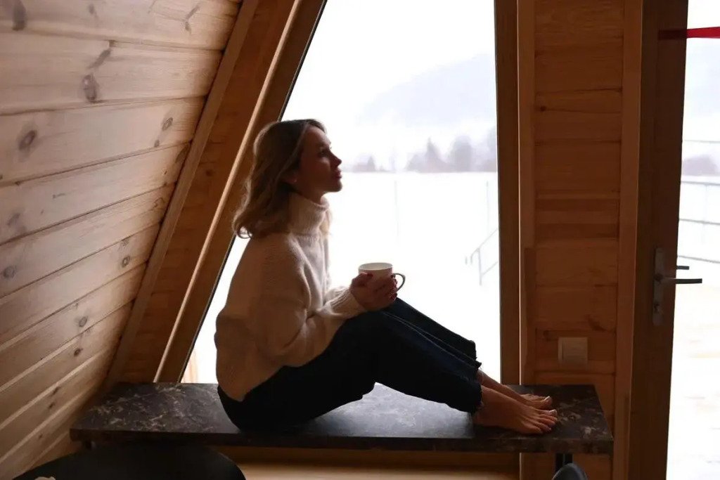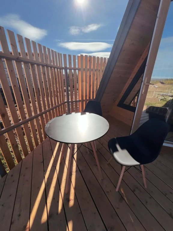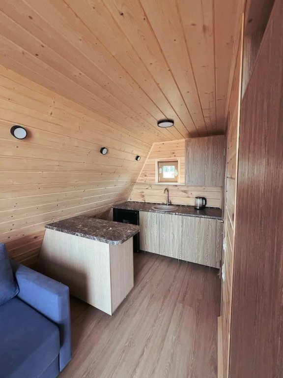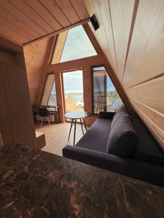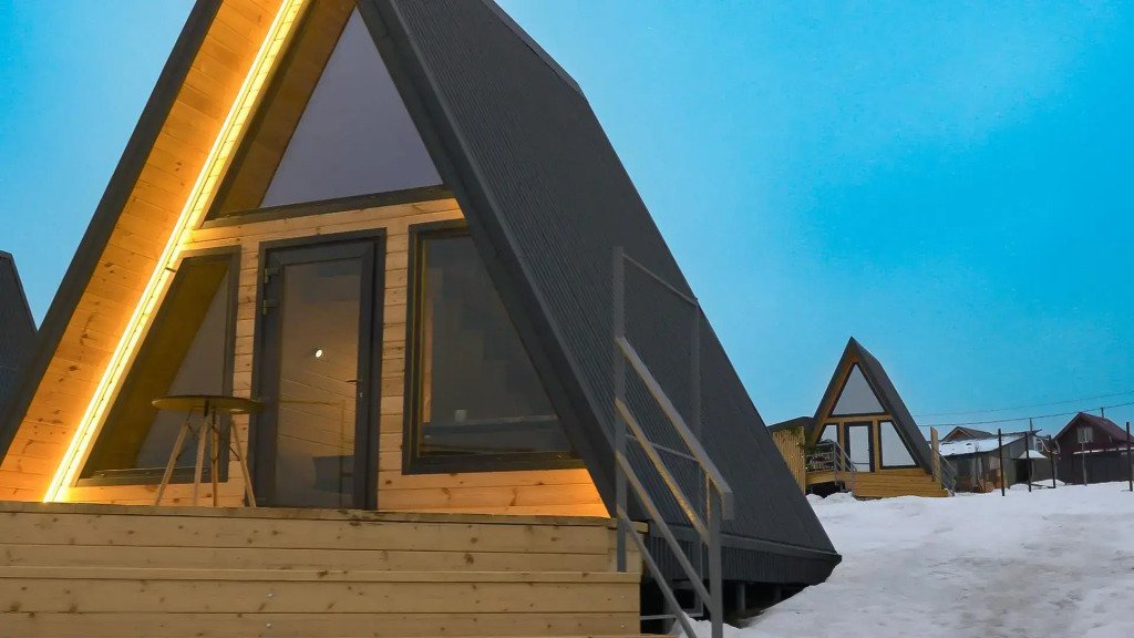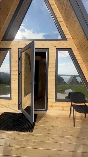 Номер в доме А-фрейм с баней-бочкой с панорамным видом, для отдыха с видом на реку. Отдохните в уютном номере в доме А-фрейм. Из окон открывается потрясающий вид на реку, который позволит вам насладиться красотой природы и расслабиться после насыщенного дня.