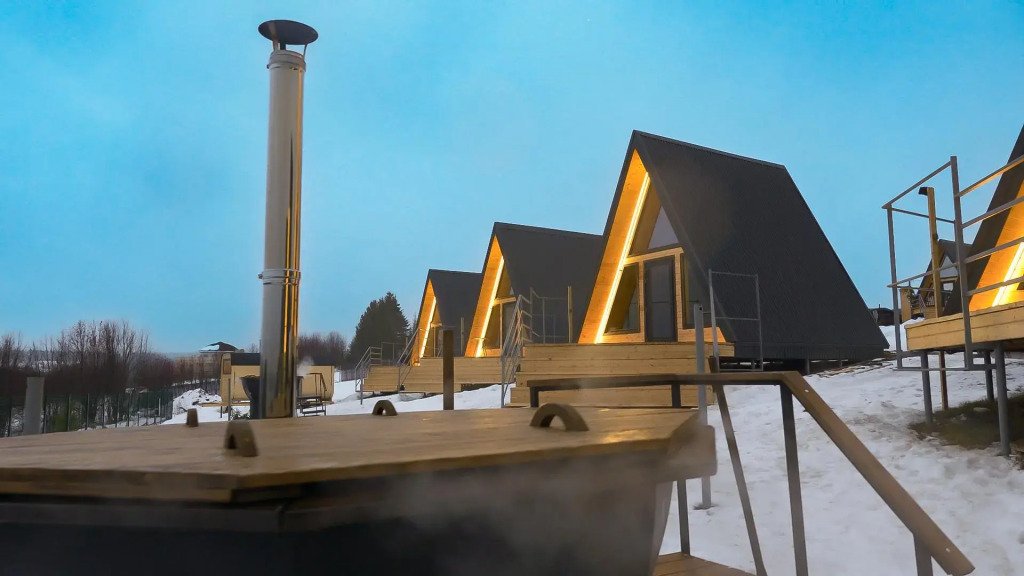 Номер в доме А-фрейм с горячим банным чаном, для отдыха с видом на реку. Отдохните в уютном номере в доме А-фрейм. Из окон открывается потрясающий вид на реку, который позволит вам насладиться красотой природы и расслабиться после насыщенного дня.