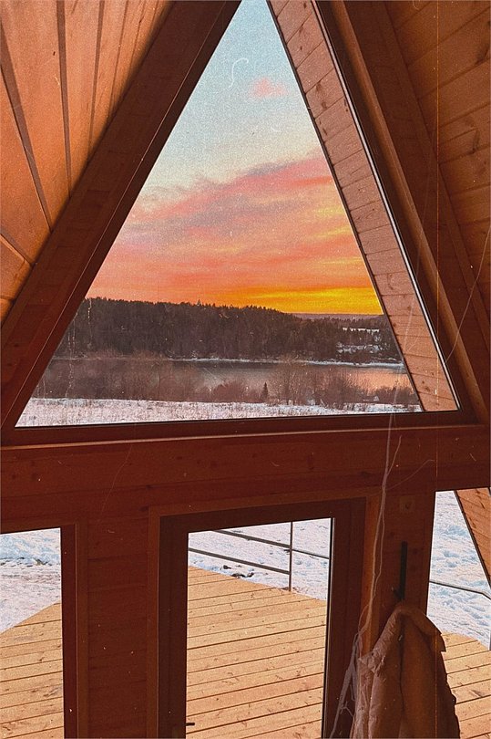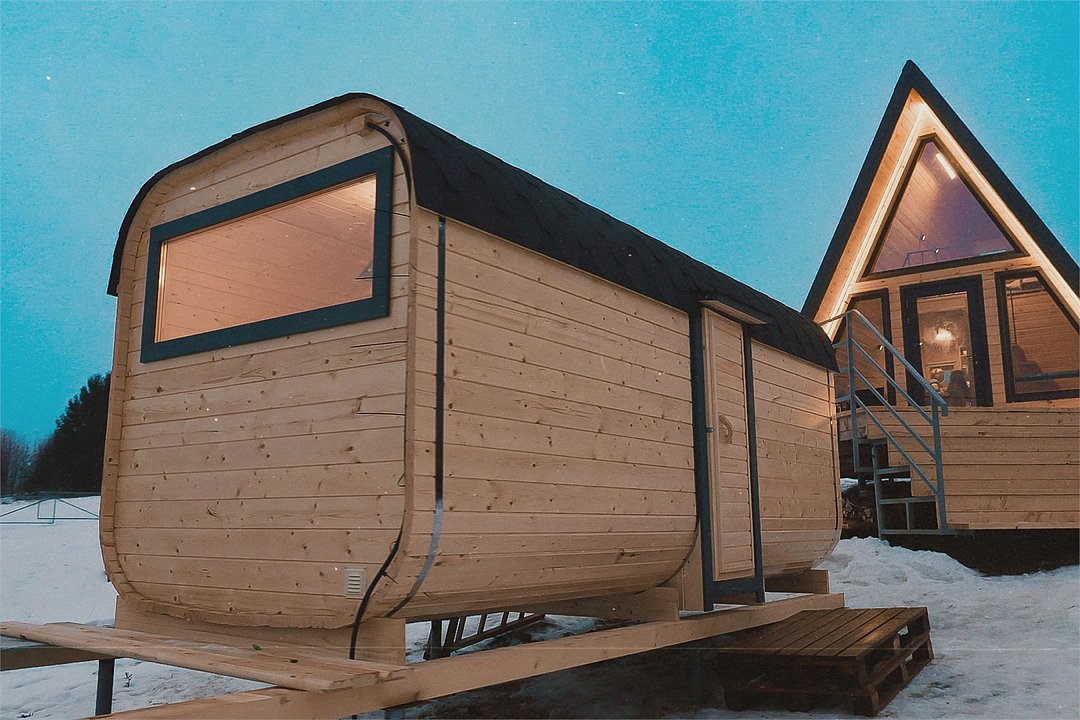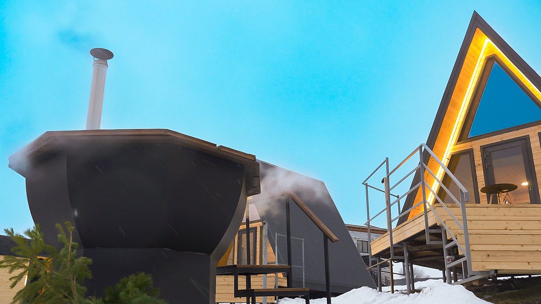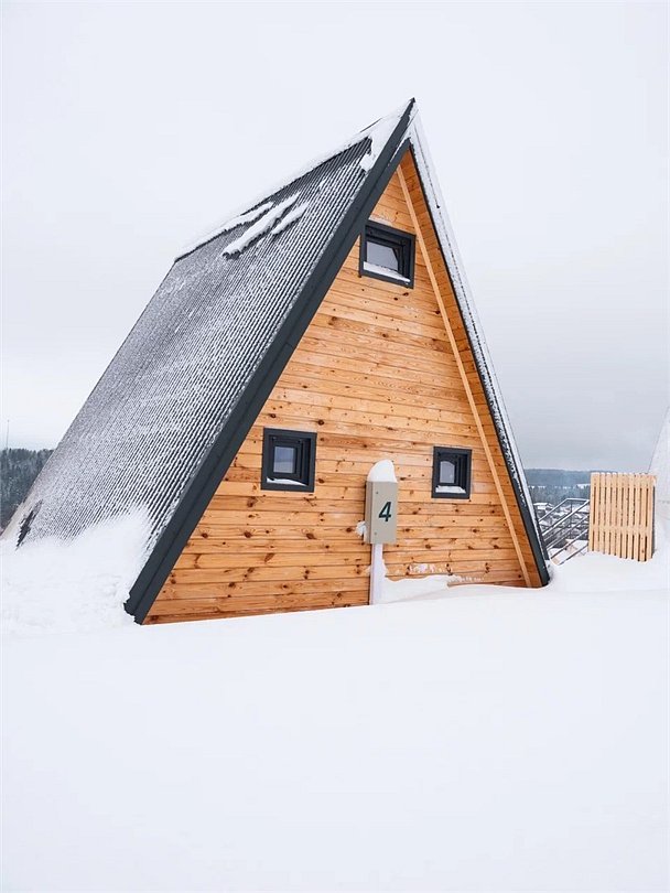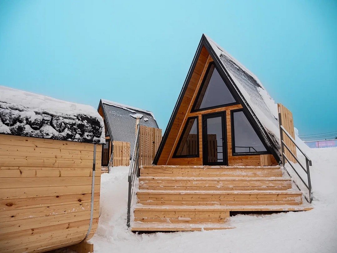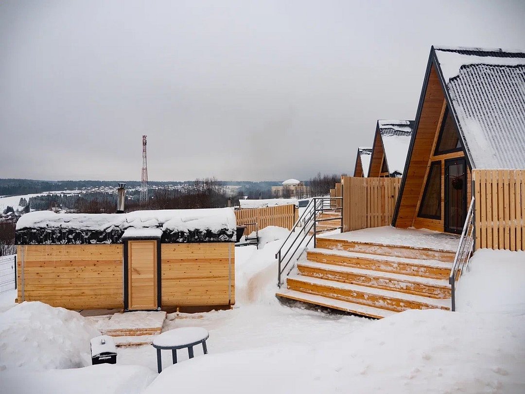 Номер А-фрейм представлен в современном дизайне с большими панорамными окнами, открывающими вид на реку и знаменитый музей Хохловка. Номер оснащен удобными кроватями, стильной мебелью и всеми необходимыми удобствами для комфортного проживания.