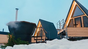 Номер А-фрейм представлен в современном дизайне с большими панорамными окнами с видом на реку и знаменитый музей Хохловка. Номер оснащен удобными кроватями, стильной мебелью и всеми необходимыми удобствами для комфортного проживания.