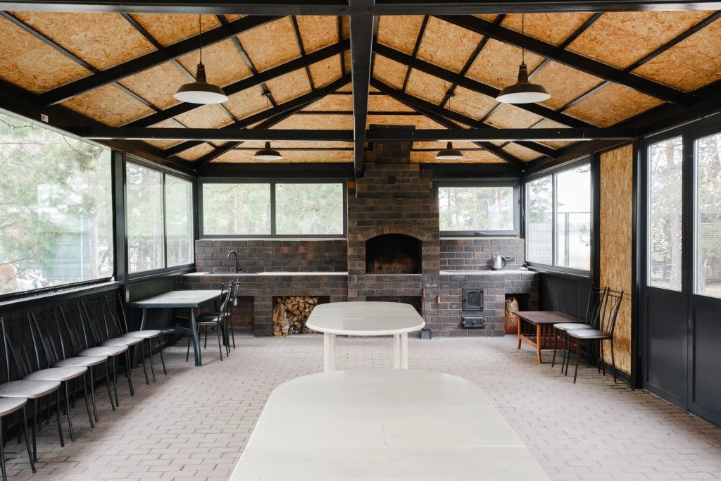 На охраняемой территории гостей ждут: теннисный корт, детская игровая площадка, мангальная зона, спортивная площадка, тюбинговая горка.