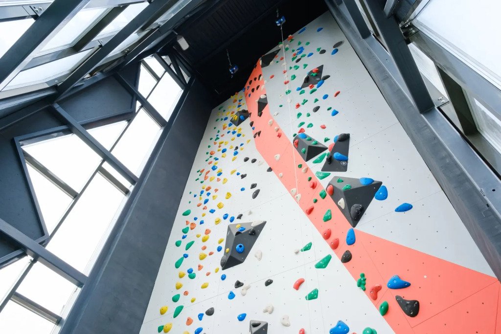 Развлечения: крытый скалодром для любителей активного отдыха.