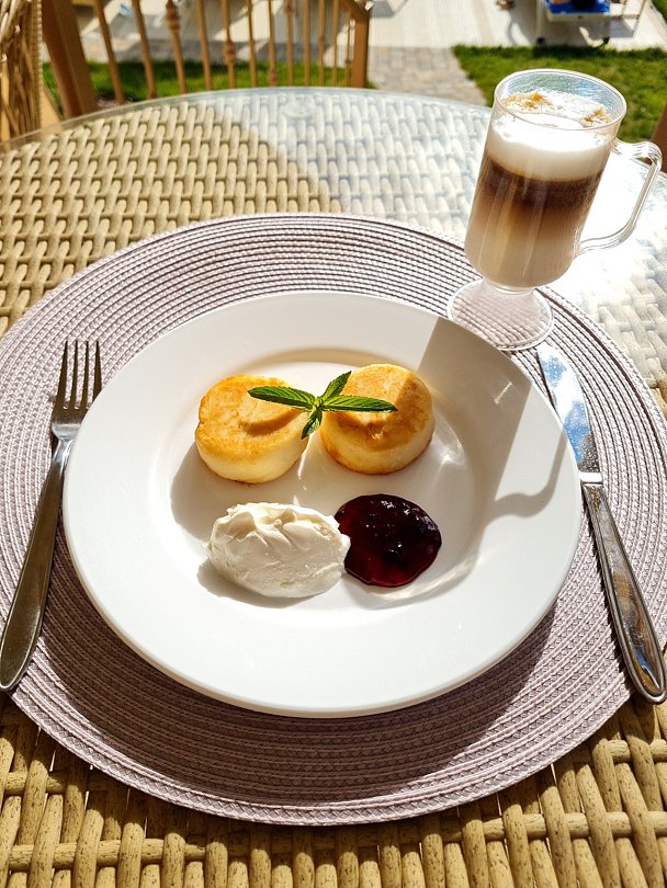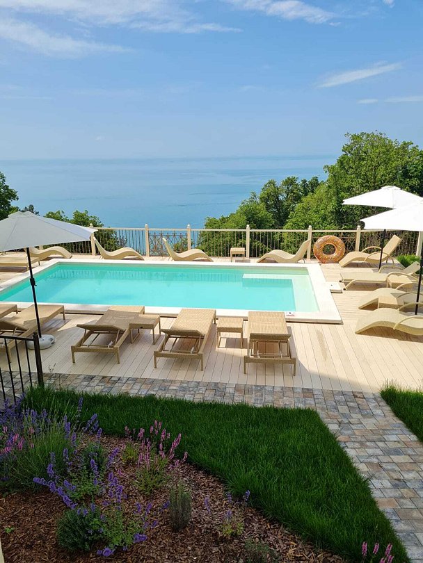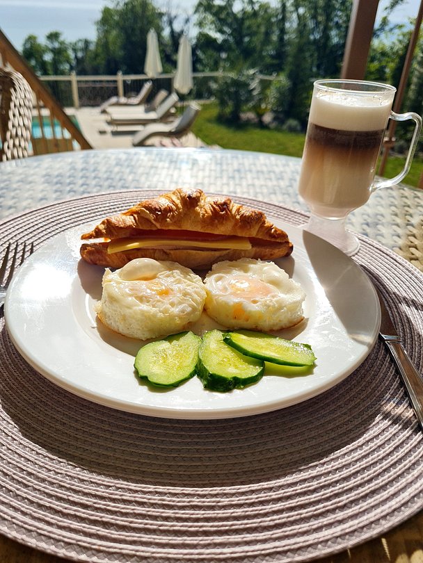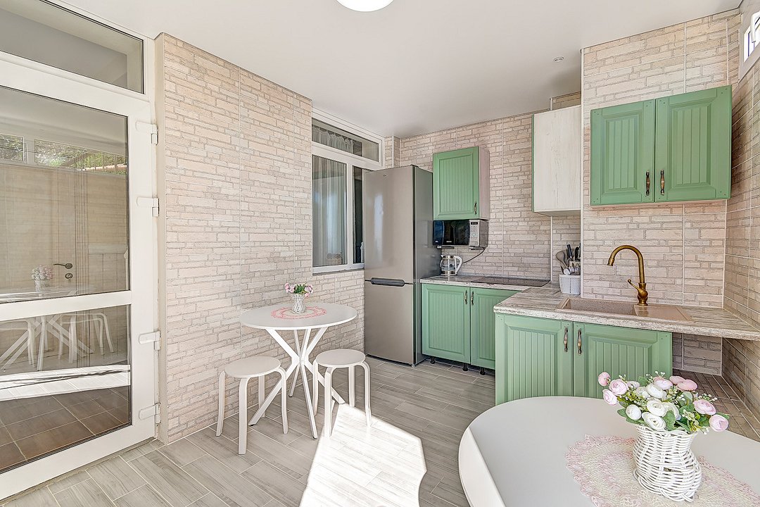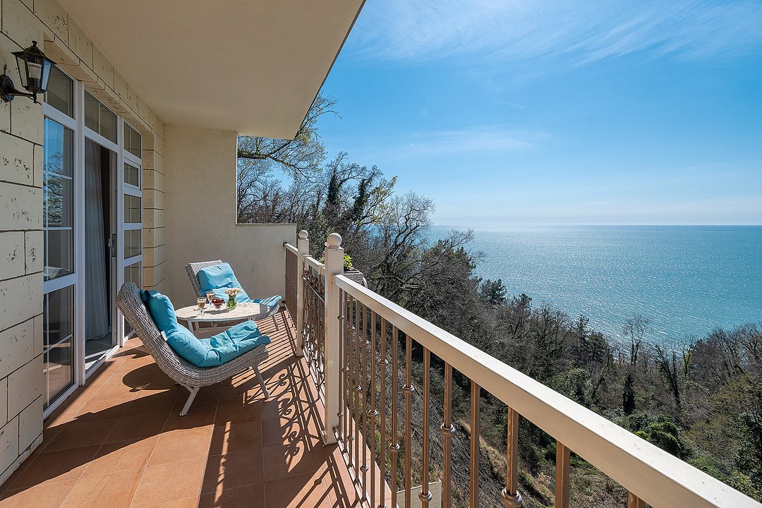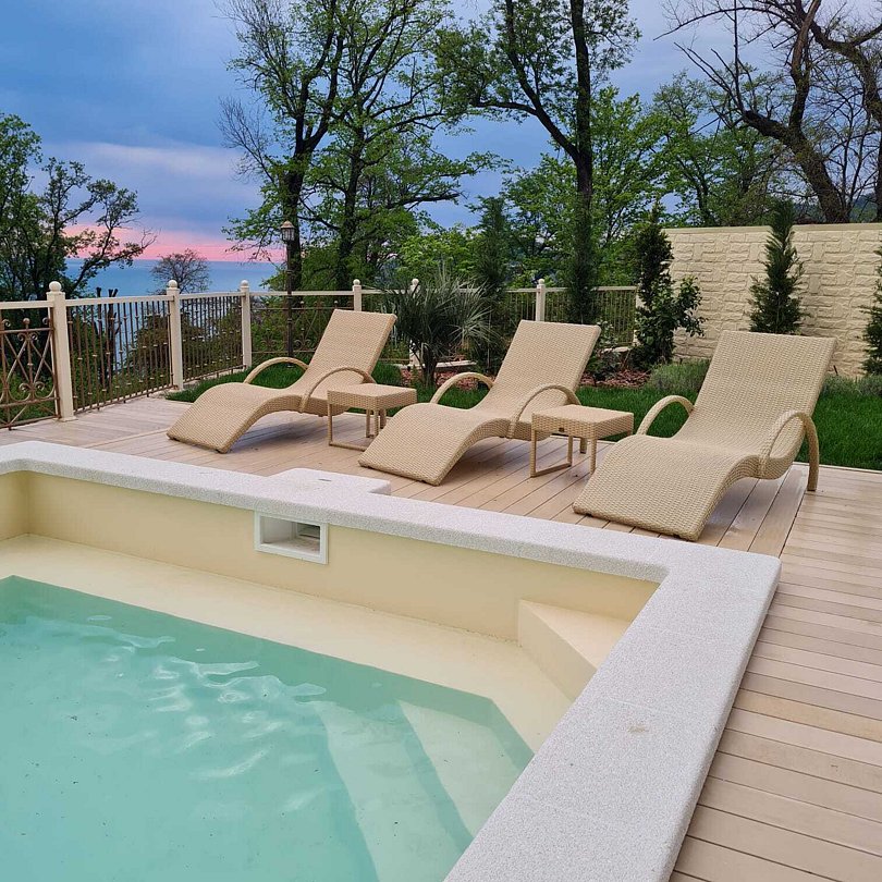 На благоустроенном цветущем участке возле дома есть бассейн, с комфортной температурой, действующий круглогодично. Вокруг бассейна можно позагорать на плетеных шезлонгах, любуясь видом открытого моря. Мангальная зона и принадлежности для барбекю позволят приготовить вкусный ужин. На летней террасе подается идеальный завтрак: свежеиспеченный круассан (сырники или блинчики) и ароматный кофе (сезонно). На территории гостевого дома есть Wi-Fi, предусмотрена неохраняемая закрытая парковка (по запросу).