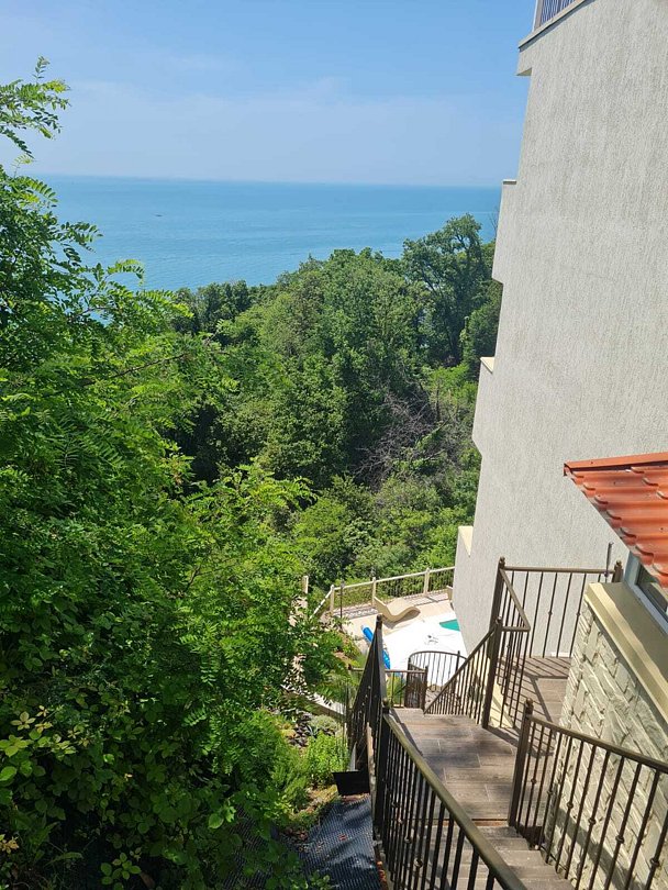 Дорога до оборудованного пляжа и центра Хосты займет 15-20 минут ходьбы (дорога частично проходит вниз по лестнице).