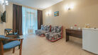 Гостиница, состоящая из одного жилого корпуса, предлагает отдыхающим светлые и уютные номера четырех категорий, выполненные в простом классическом стиле. Наряду с однокомнатными, есть вместительные двухкомнатные номера и студии. В каждом предусмотрен телевизор, кондиционер, современный мебельный гарнитур и собственный санузел с душем. В некоторых комнатах есть балконы и террасы с видами на море.