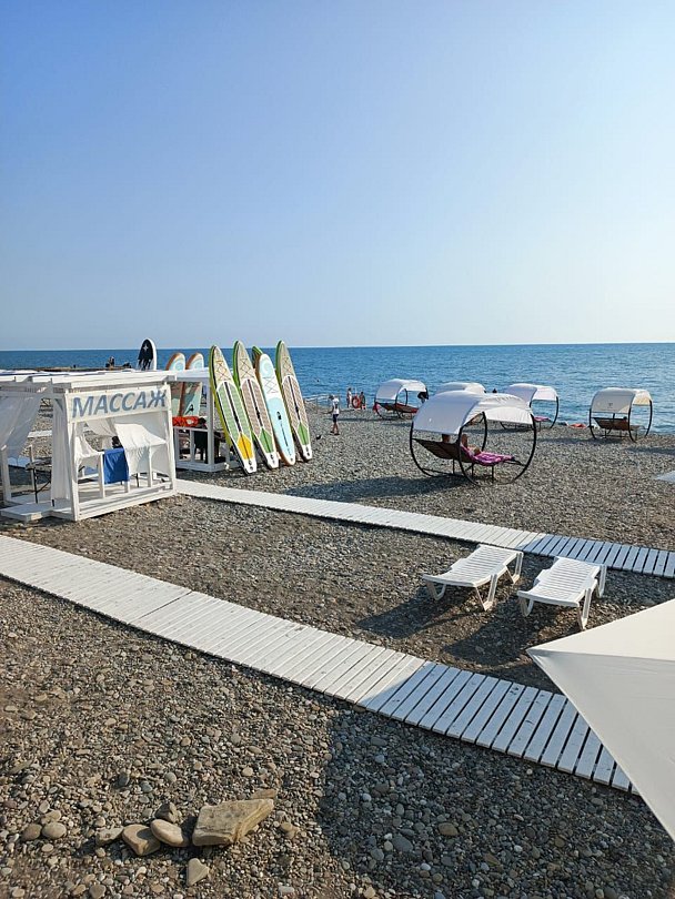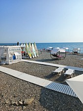 Тип пляжа: песчано-галечный, оборудованныйИнфраструктура: лежаки, зонтики, шезлонги, барУдобства на пляже: душ, санузелОборудованные большие пляжи, набережная с кафе и ресторанами.