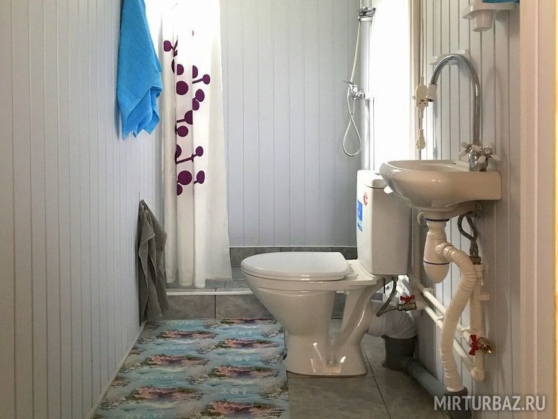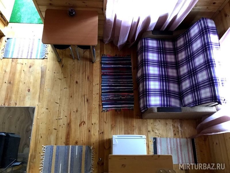 Одноэтажный домик с террасой, рассчитанный на проживание до 5 человек. Имеются все удобства, собственный санузел. Две двуспальные кровати и раскладной диван, столик.