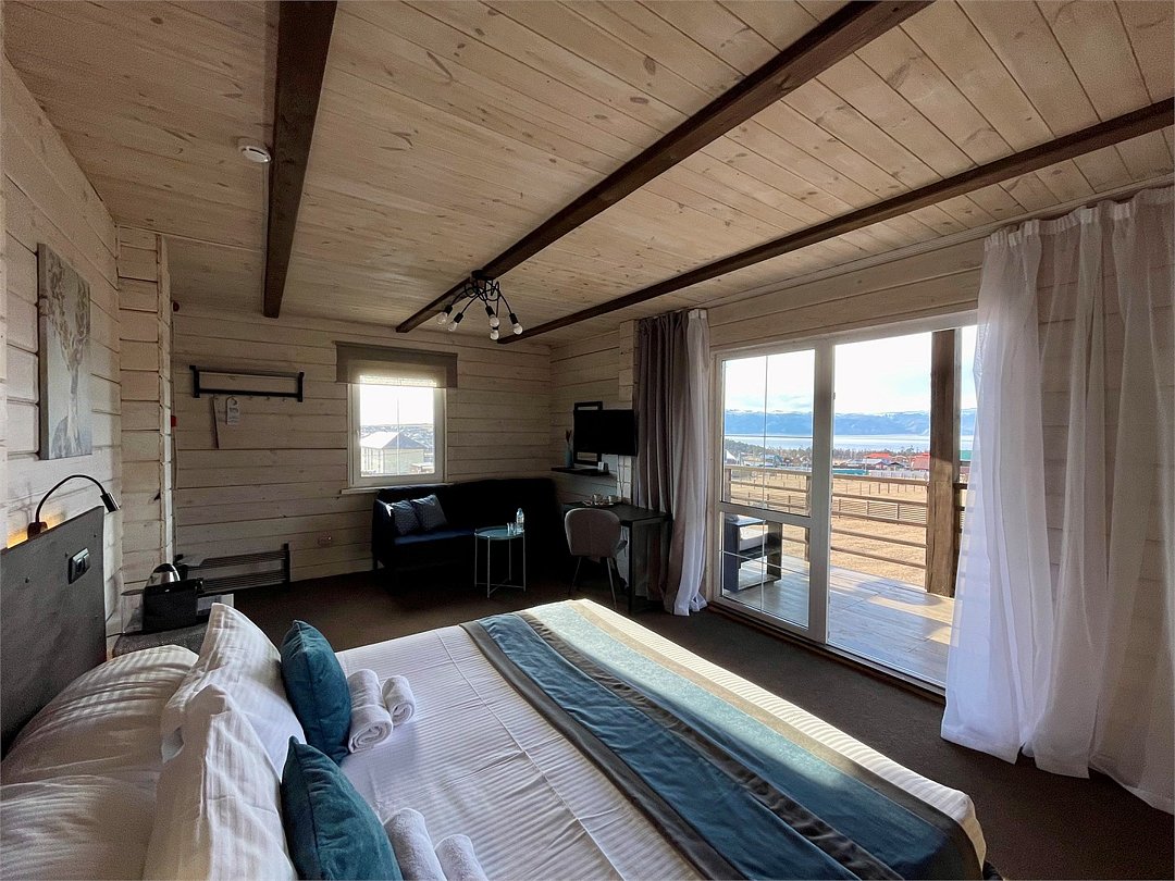 Номера данной категории просторны и комфортабельны. Идеально подходят для семьи с детьми. Пребывание в номерах, с видом на Байкал, выполненных в аутентичном сибирском стиле с максимальным использованием разных пород дерева, позволят Вам в полной мере прочувствовать единение с природой. Комплектация номера: две односпальные кровати или кровать размера "King Size" , в номере также есть диван-кровать ( размером 120*200), уютная зона для чаепития: ароматный чай, чайничек и чайная пара, а также холодильник , комод, тумбочка, телевизор и фен. Ванная комната с душевой кабиной, туалет - всё выполнено исходя из желания быть ближе к природе, но при этом не забывать о комфорте каждого гостя. Каждое утро мы приглашаем Вас в наш ресторан, ведь завтрак входит в стоимость номера.Услуги и удобства