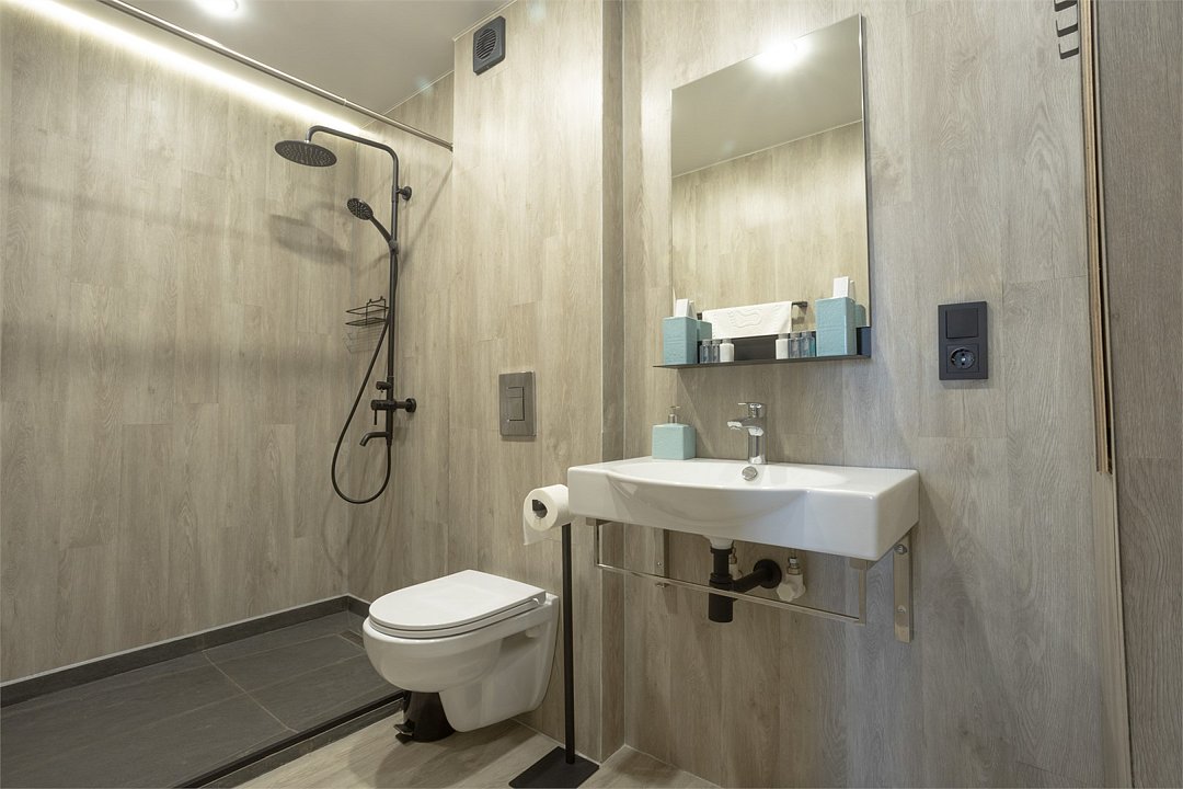 фен, водонагреватель, теплый пол, банные полотенца, тапочки, терраса, двуспальная кровать, две односпальные кровати, шкаф для одежды, вешалки, журнальный столик, письменный стол, зеркало, звуконепроницаемые стены и окна, чайный набор, унитаз, раковина, отдельный вход в номер, душ, вид во двор, стул, туалетные средства, панорамные окна, цифровое тв, мини-холодильник, гостиничная парфюмерия, номер для некурящих, вешалки-плечики, мылоВ гостиничном номере