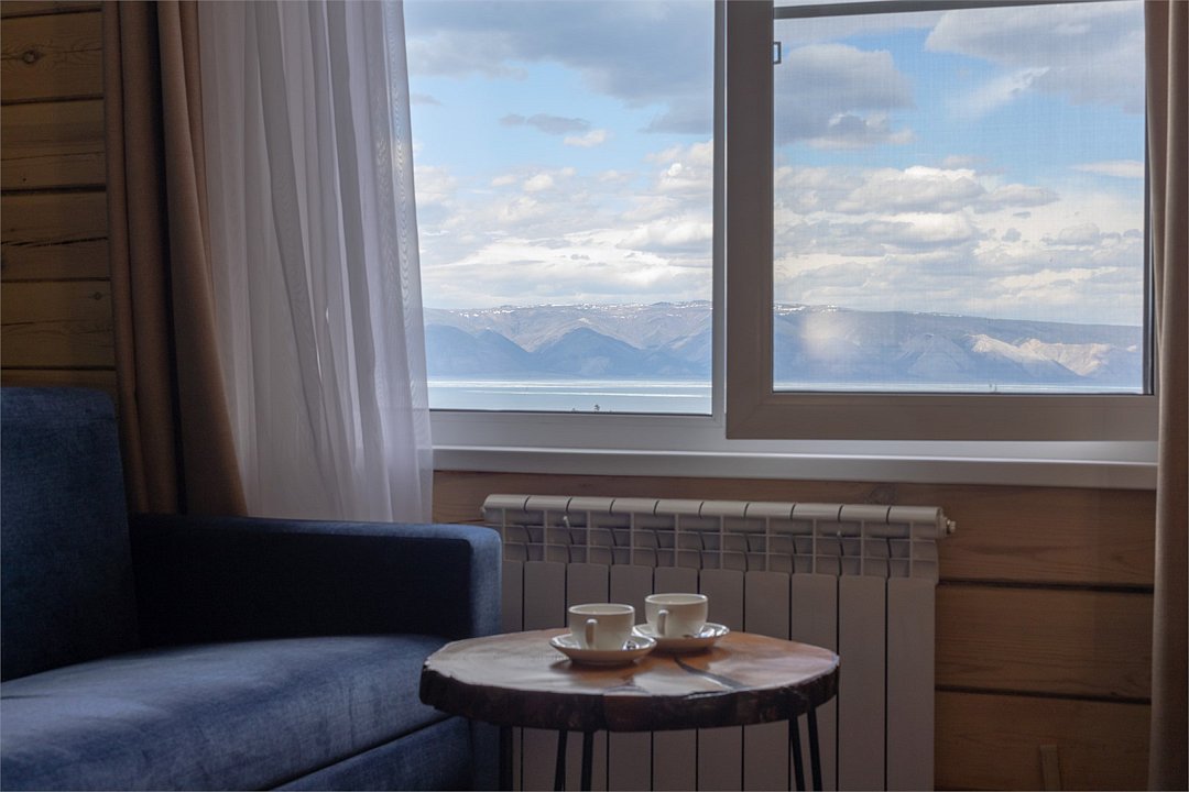 Просторный солнечный номер с огромным панорамным окном и видом на Байкал, головокружительно приятным сочетанием ароматов древесины и хрустящей свежести постельного белья. Комплектация номера: уютная зона для чаепития, чайник и ароматный чай, две односпальные кровати или кровать размера "King Size", стулья, тумбочка, вместительный холодильник, телевизор, ванная комната с туалетом и душевой кабиной, обеспеченная всем необходимым для принятия душа и ухода за собой. В стоимость номера входит восхитительный завтрак в нашем ресторане от шеф-повара.Услуги и удобства
