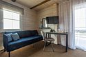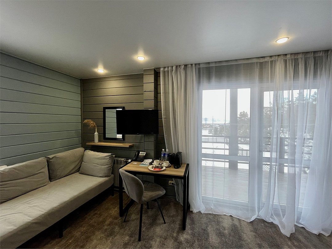 Арт-номер - это стильное и комфортное пространство с большим панорамным окном и террасой с видом на лес и во внутренний двор отеля. Элегантная мебель из натурального дерева, красивый интерьер , звукоизоляция и продуманные детали для приятного пребывания на отдыхе.Услуги и удобства