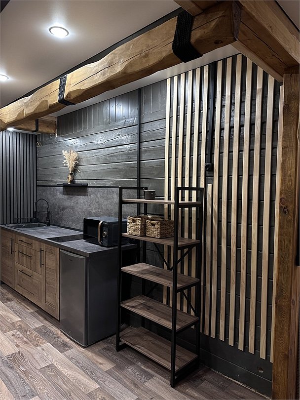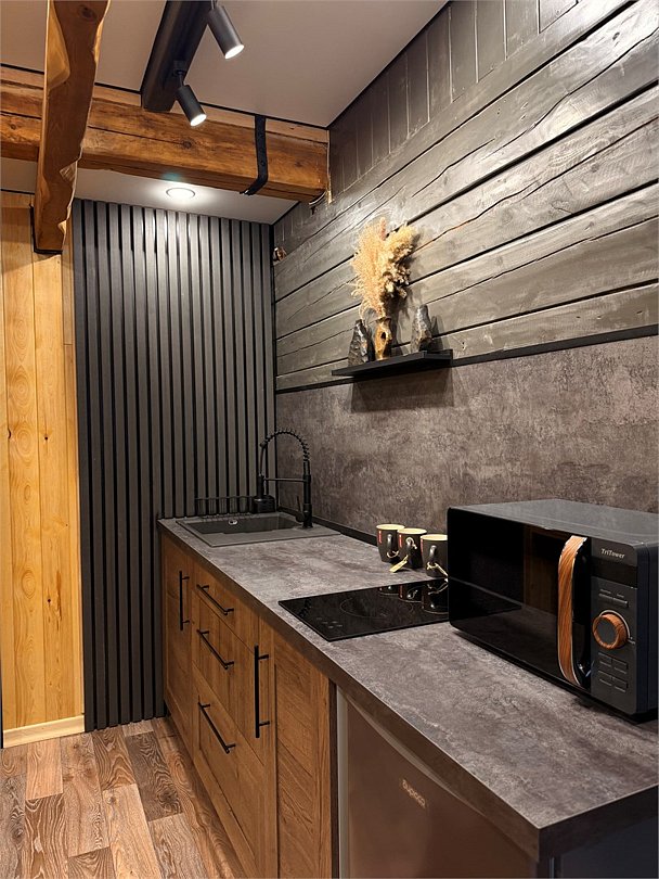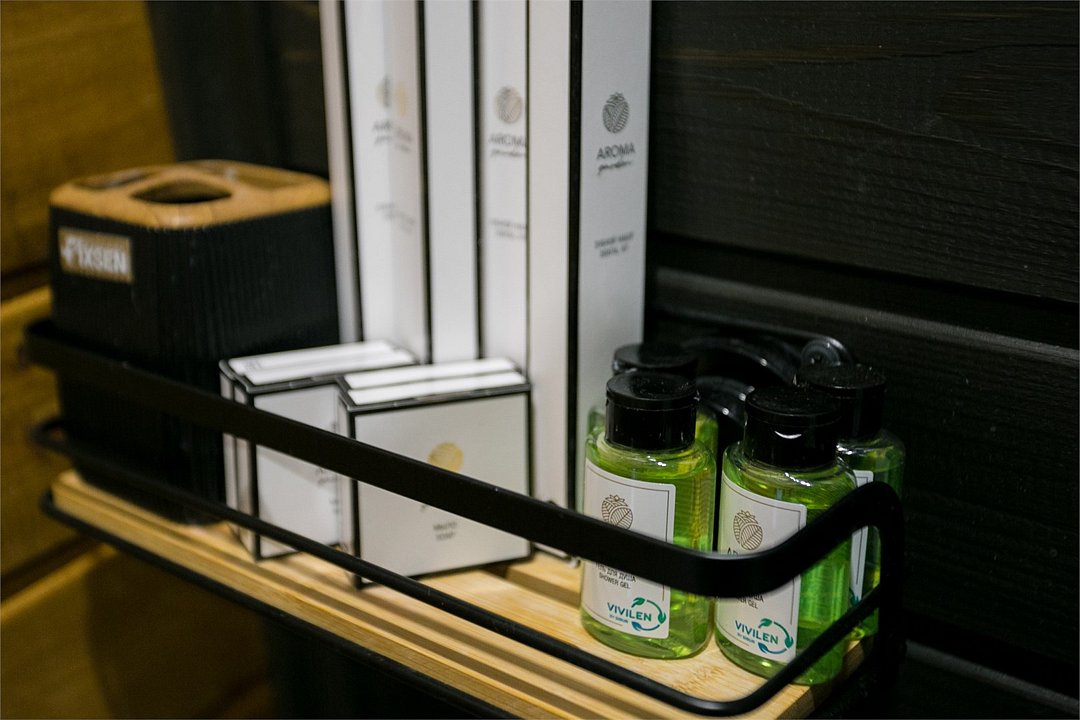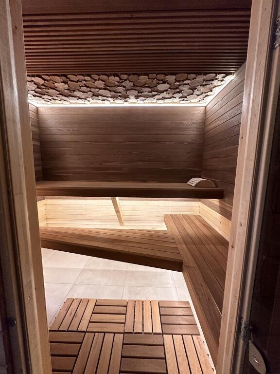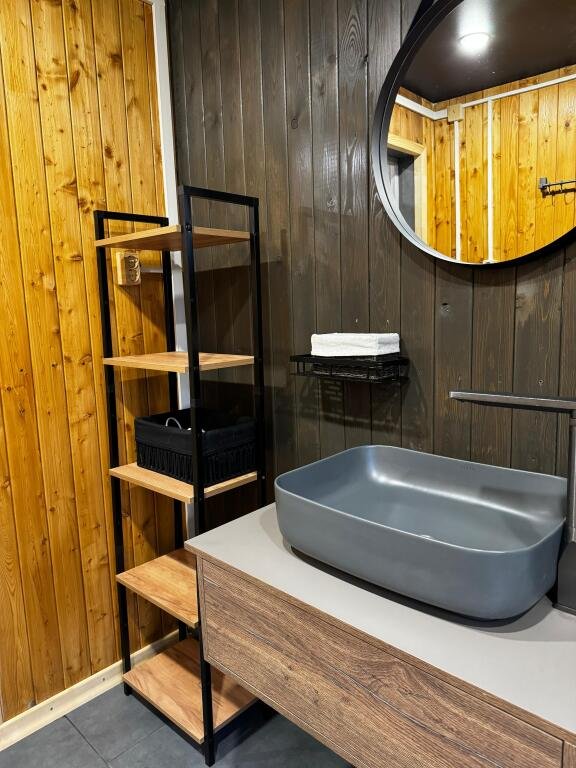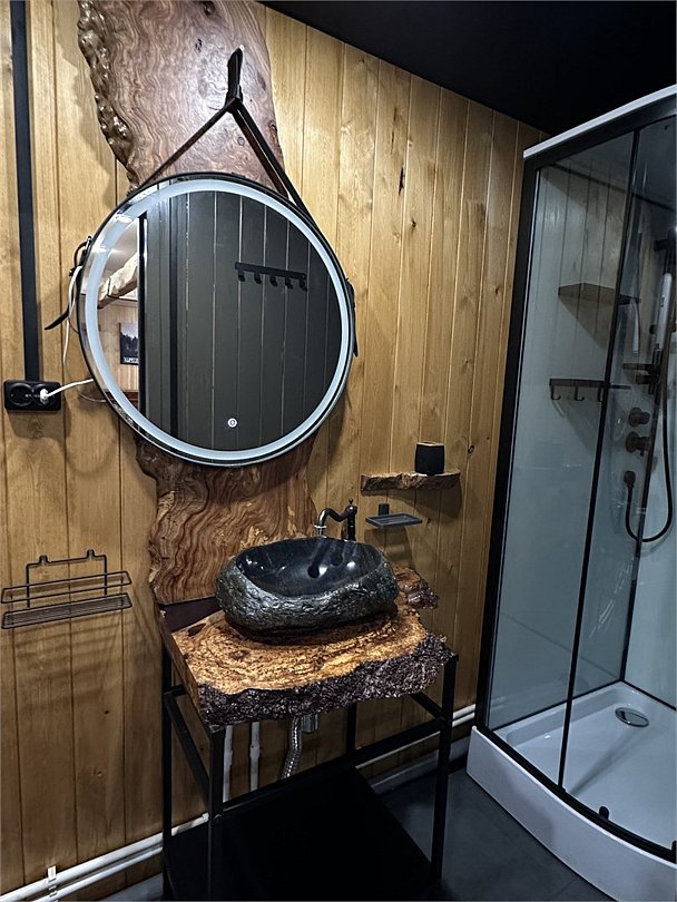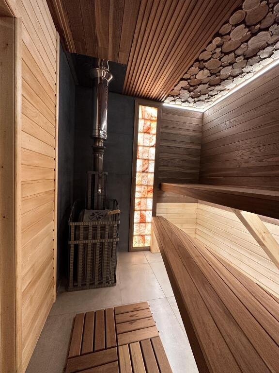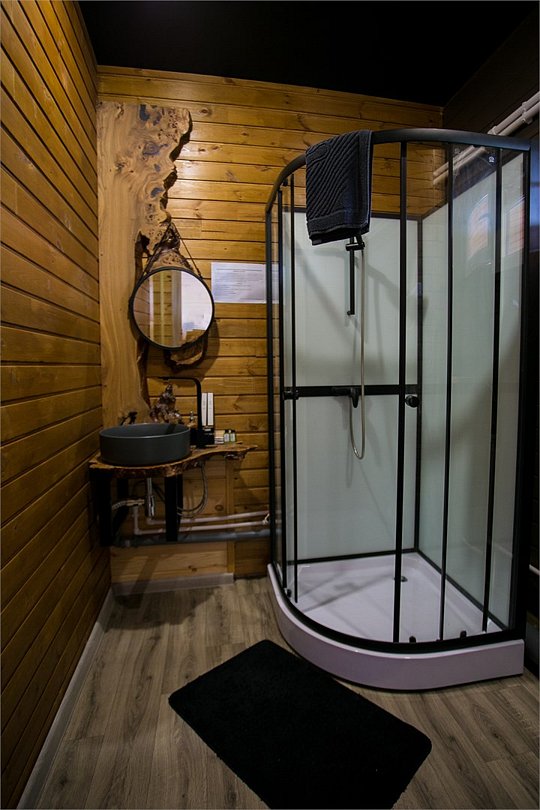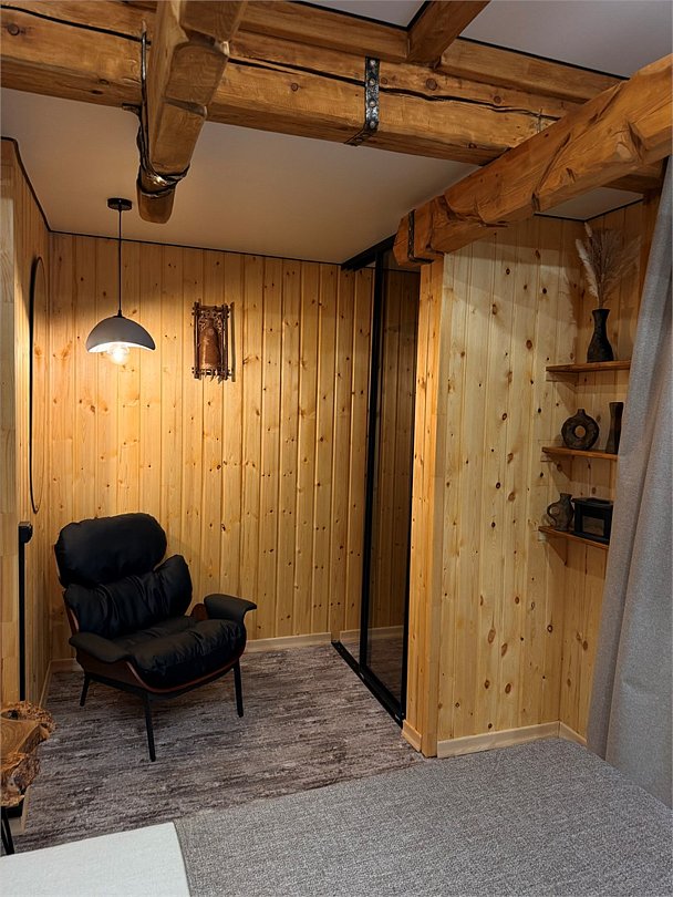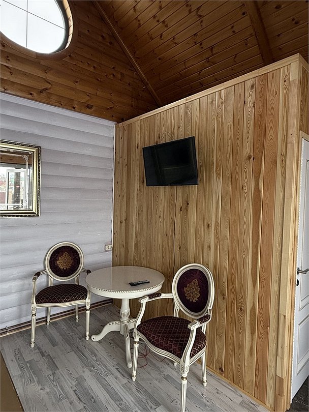 Инфраструктура: тапочки, полотенца, халатыОтделка бани из высококачественных материалов термоабаш и термодуб.
