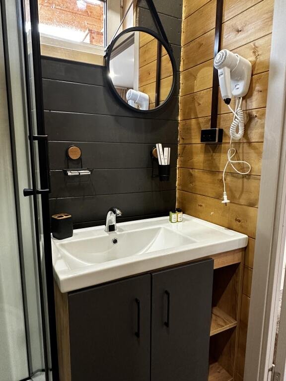 холодильник, фен, вентилятор, обогреватель, ванная комната, душевая кабина, санузел, водонагреватель, банные полотенца, тапочки, диван, стулья, шкаф для одежды, зеркало, чайник, унитаз, раковина, обеденная зона, отопление, душ, стул, туалетные средства, мангал, мини-холодильник, телевизор со Smart TV, туалетные принадлежности премиум-класса, вешалки-плечики, уличный стол и стулья из тикового дерева, мыло, затемняющая штора, можно с питомцамиВ номере