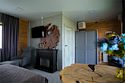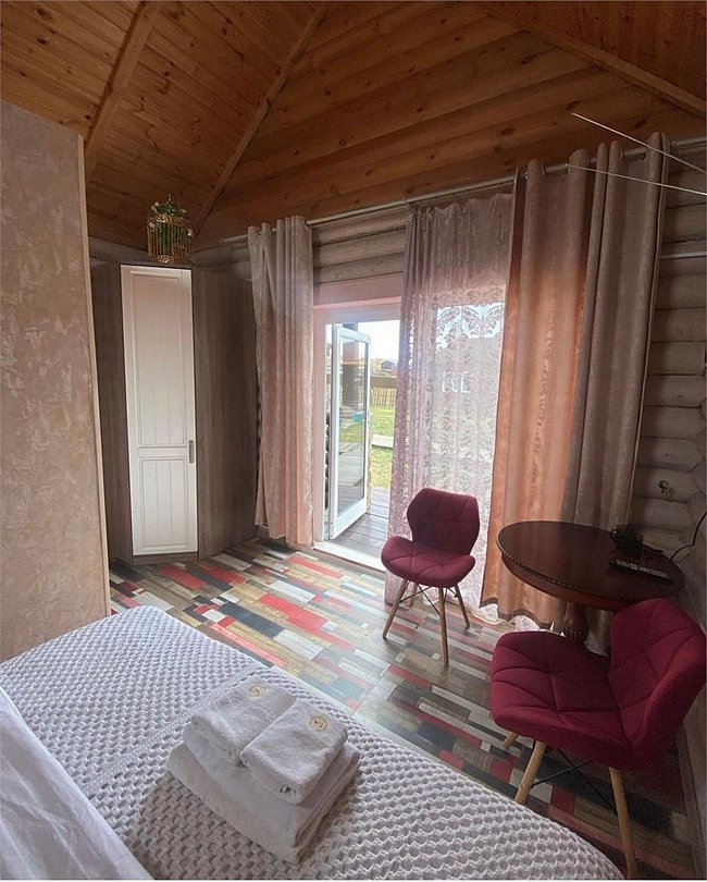 Wi-Fi, холодильник, светильник, фен, обогреватель, душевая кабина, санузел, водонагреватель, теплый пол, халаты, тапочки, терраса, кровать «King size», тумбы, стулья, шкаф для одежды, вешалки, обеденный стол, зеркало, звуконепроницаемые стены и окна, чайник, унитаз, отопление, отдельный вход в номер, душ, вид на сад, кресло, ламинат, стаканы, стол, тумба, мангал, панорамные окна, мини-холодильник, телевизор со Smart TV, теплые полы, туалетные принадлежности премиум-класса, веранда, мыло, затемняющая штора, можно с питомцами, баняВ бунгало