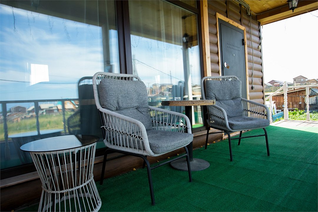Шикарный номер на втором этаже. Вид на Байкал. Балкон с мебелью . Звукоизоляция. Эксклюзивная мебель.Услуги и удобства