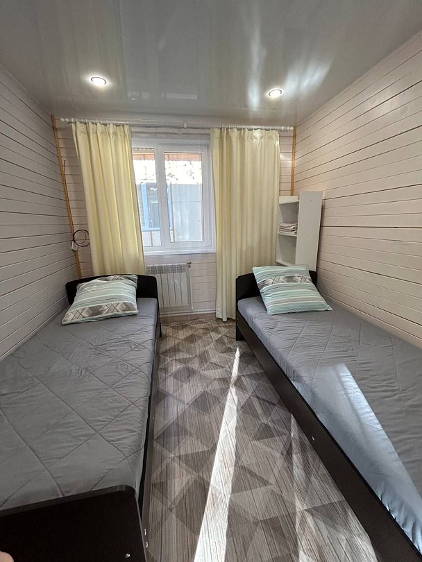 Две односпальные кровати, одна двуспальная кроватьДом 6-местный