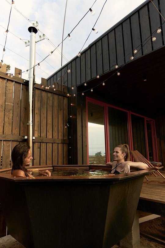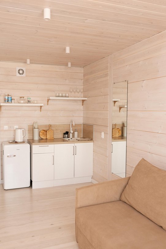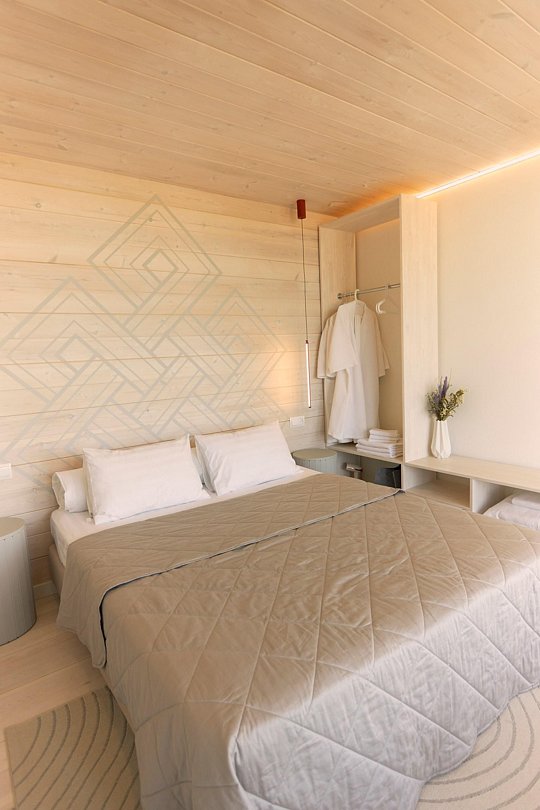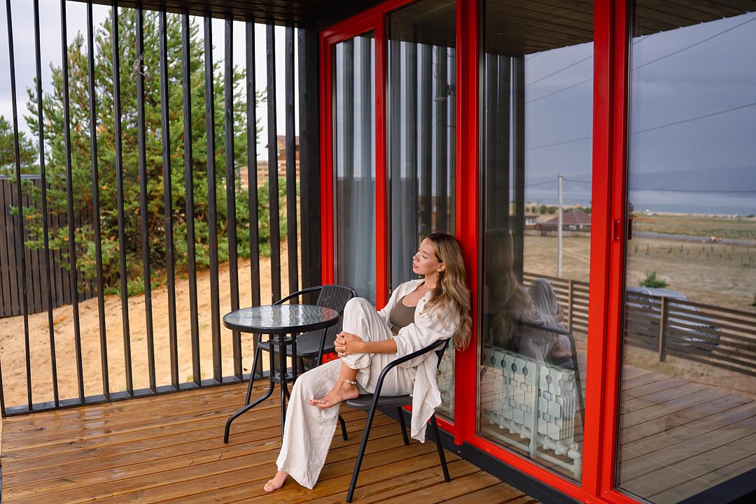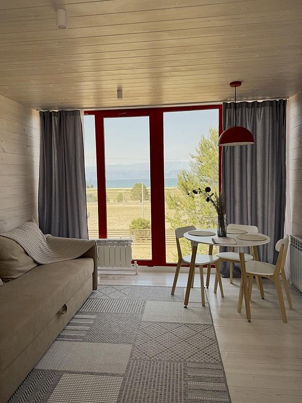 В каждом домике вместимостью до 4 человек имеется кухонная зона, оснащенная необходимой техникой для приготовления еды и набором посуды, благоустроенный санузел, веранда с видом на Байкал и зона для мангала. При проектировании домов использовался современный дизайн, дополненный элементами местной культуры.