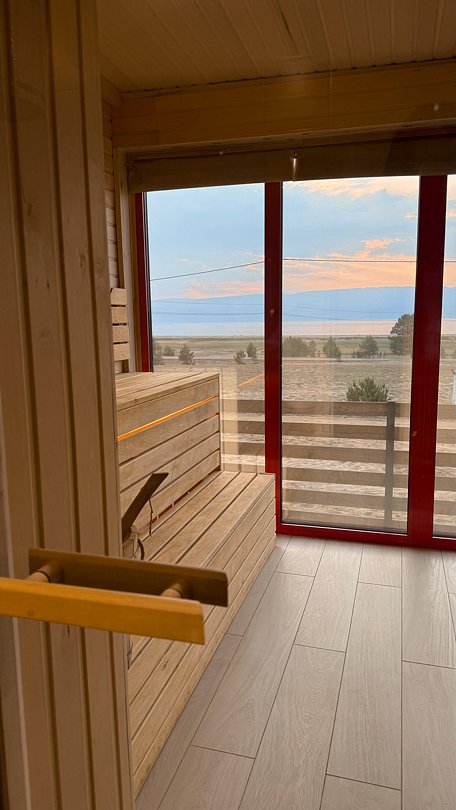 Баня с панорамными окнами и видом на Байкал