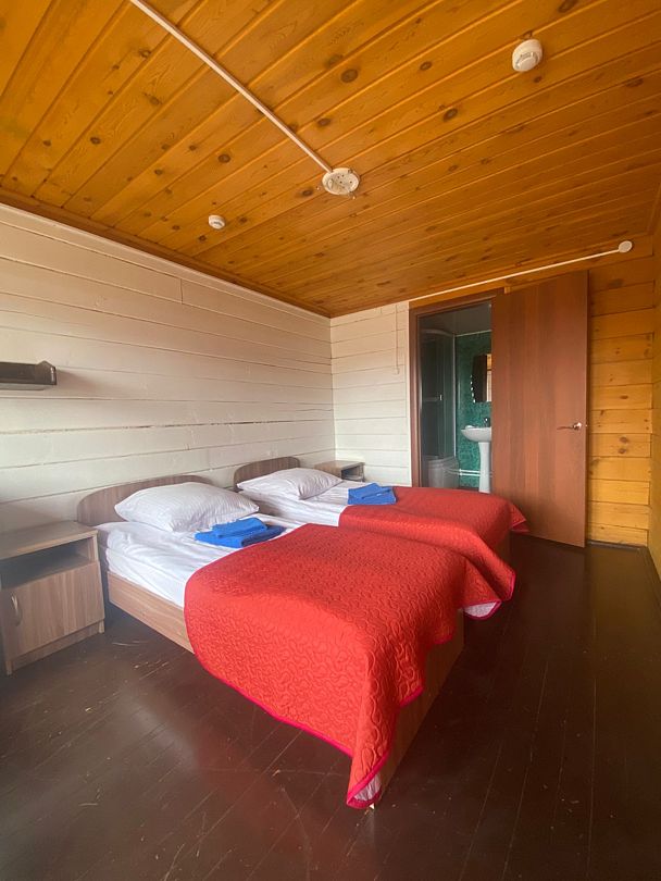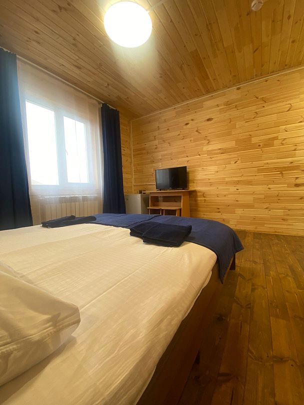 КорпоративДостоинстваПонравился интерьер внутри деревянных домов, просторные комнаты. Вокруг базы отдыха очень красивая природа, видно озеро и горные массивы. Это место – рай для фотографов.