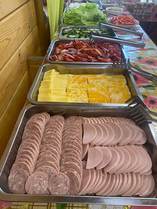Вас ждет уютная столовая, из окон которой, отрывается прекрасный вид на Байкал. В меню вы найдете: различные супы, холодные и горячие закуски, мясные блюда, всегда свежие молочные продукты, ароматную выпечку, блюда сибирской и буряткой кухни, различные деликатесы из рыбы, закуски. Здесь приготовят вам традиционную домашнюю пищу.