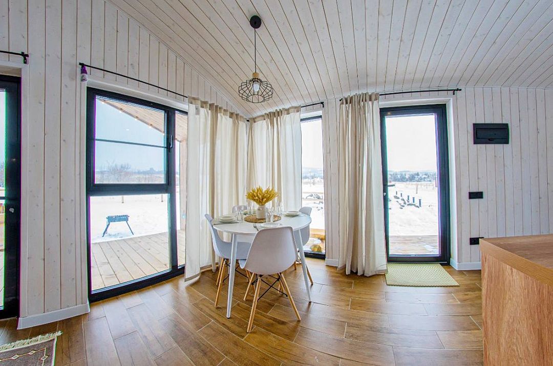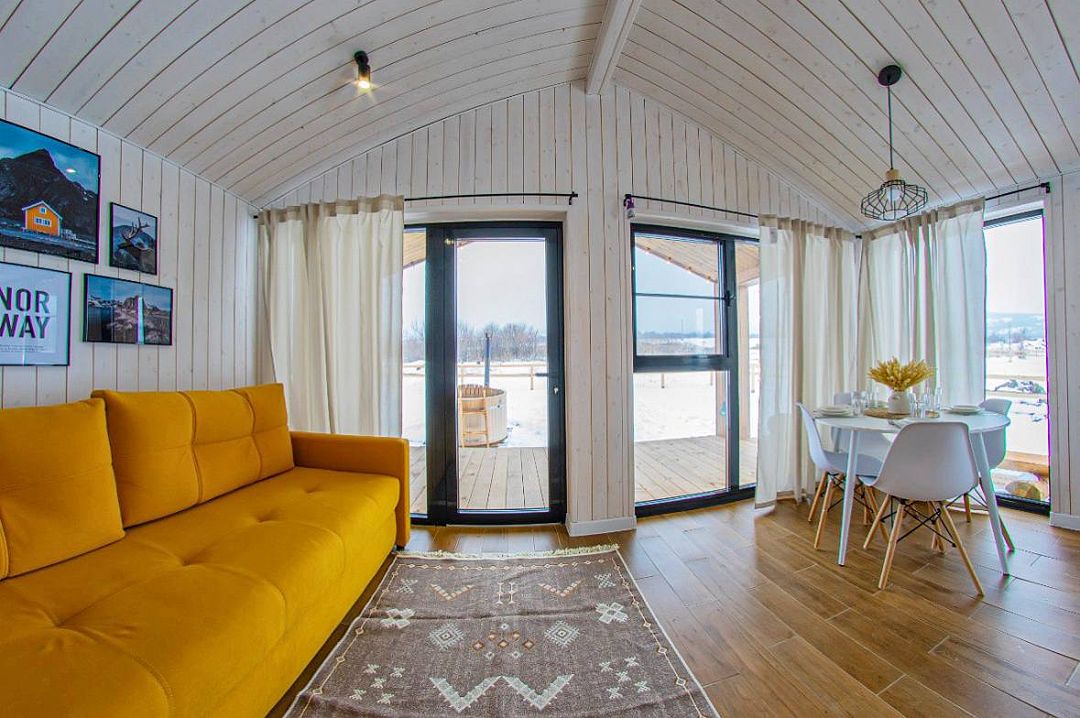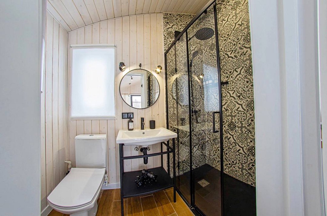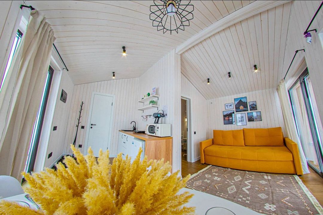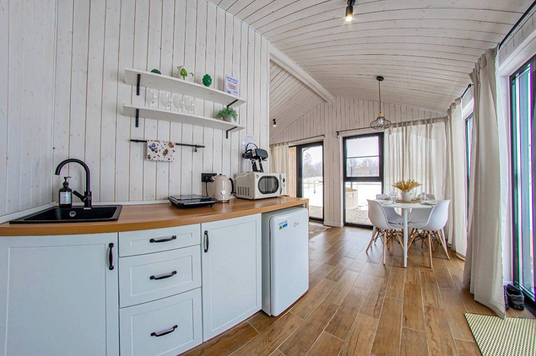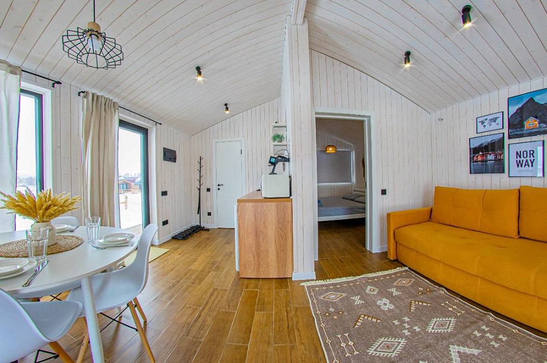 Светлый и уютный, оформленный в стильном дизайне, дом предлагает изолированную спальню, гостиную, обеденную зону, кухню и санузел с душем. Есть вся необходимая бытовая техника и посуда для комфортного проживания.