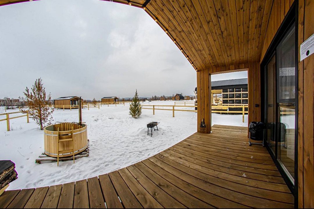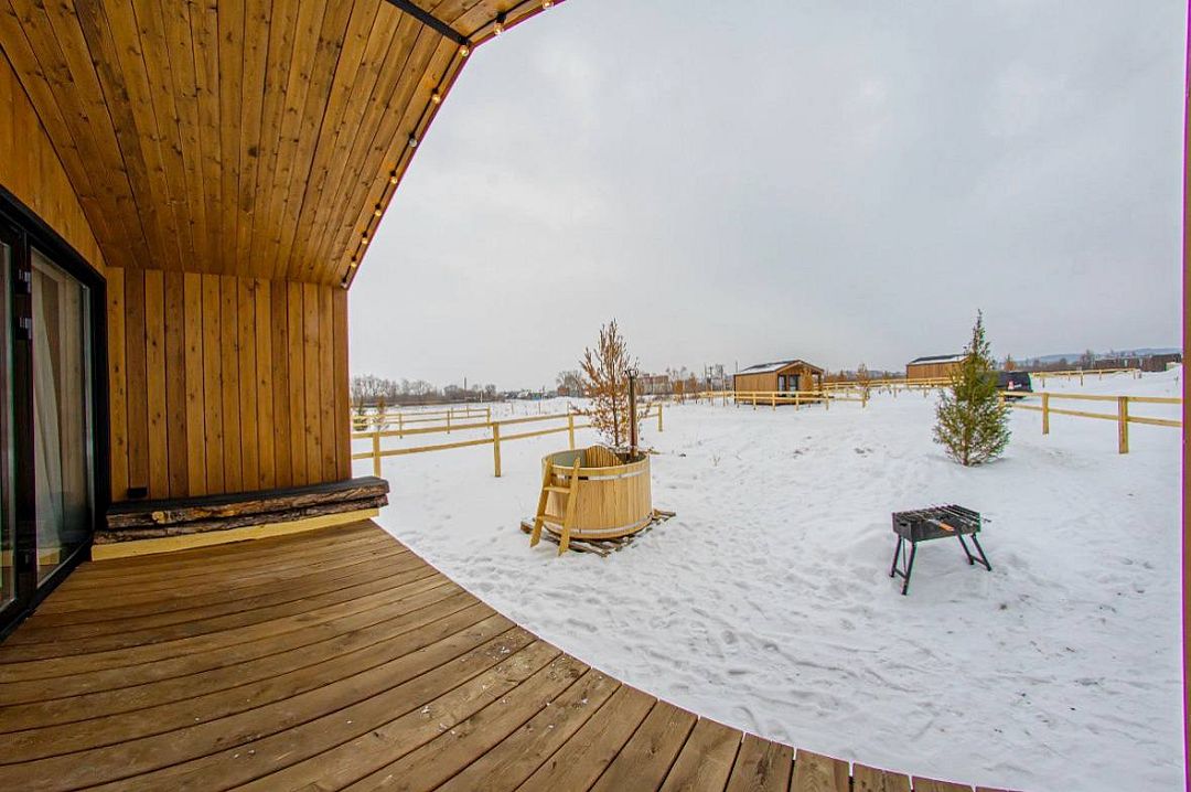 Расслабьтесь в бочке фурако, наслаждаясь горными пейзажами. В шаговой доступности река Волга — прекрасное место для рыбалки, прогулок на водном транспорте и созерцания живописных видов.