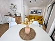 Уютный одноэтажный домик, созданный для комфортного отдыха, приглашает вас провести время с близкими и насладиться тишиной и спокойствием. Внутри вас встретит светлая и просторная гостиная, где вы сможете отвлечься от городской суеты. В ней расположена обеденная зона на четыре человека, где вы сможете насладиться совместными трапезами в кругу друзей и родных.