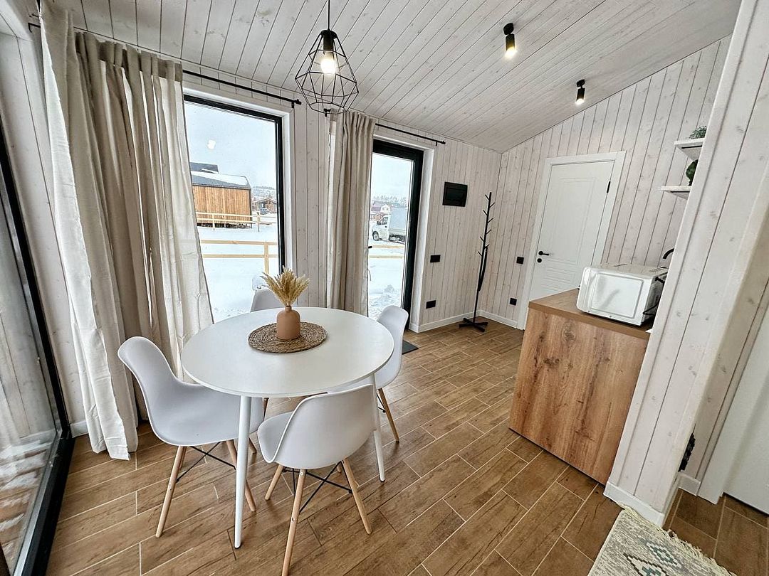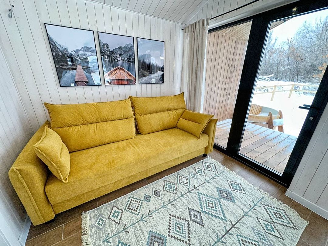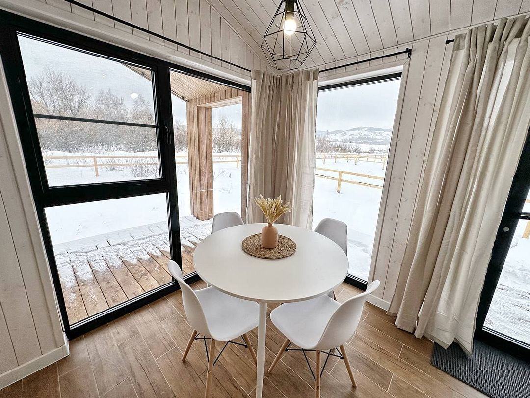 Атмосферный, уютный домик оснащен всем необходимым для вашего комфортного отдыха. Дом с красивой придворовой территорией с подсветкой, собственной террасой и местом для барбекю. Можно расслабиться в бочке фурако и насладиться видом на горы. Из панорамных окон вы будете наблюдать невероятные ландшафты как зимой, так и летом.