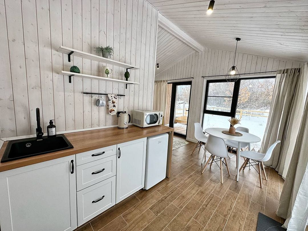Одноэтажный, светлый и уютный домик для отдыха с просторной гостиной.