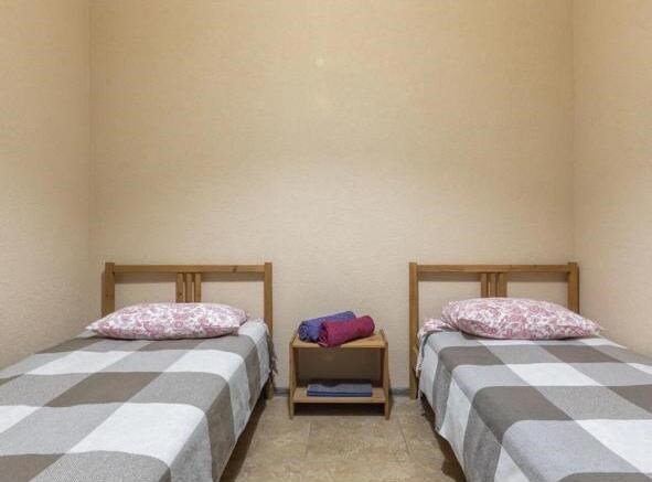 Двухместный номер на цокольном этаже с двумя односпальными кроватями. Номер без окна. Санузел общий на три номера.комфорт мансардный 2-х местный