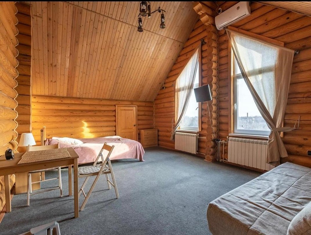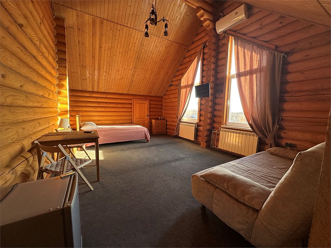 Комфортный, просторный номер. Двуспальная кровать и раскладной диван. Санузел находится в на этаже рядом с номером.Услуги и удобства