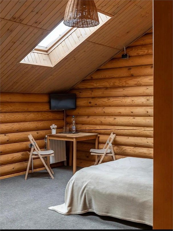 телевизор, Wi-Fi, душевая кабина, двуспальная кровать, унитаз, мини-холодильник, мансардные окнаВ гостиничном номере