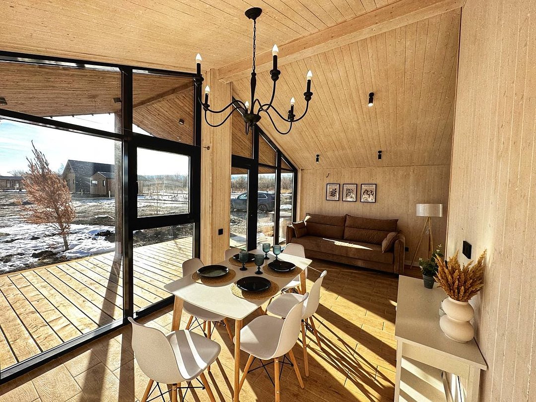 Уютный коттедж «Шале» с панорамными видами на горы и Волгу расположен в Хвалынске, рядом с горнолыжным курортом и термальными источниками.
