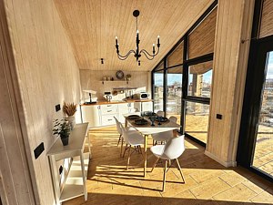 Одноэтажный светлый и уютный домик для отдыха с просторной гостиной. В доме две изолированные спальни, гостиная, обеденная зона, кухня, а так же санузел с душевой. Имеется вся необходимая техника и посуда для вашего комфортного отдыха.