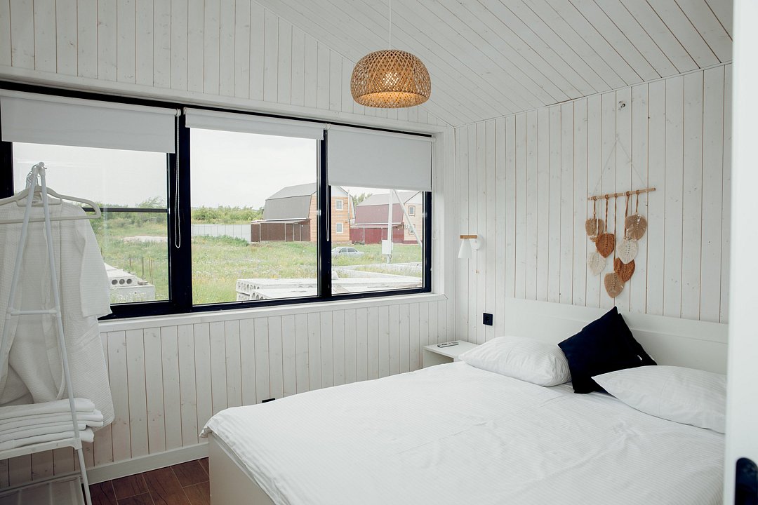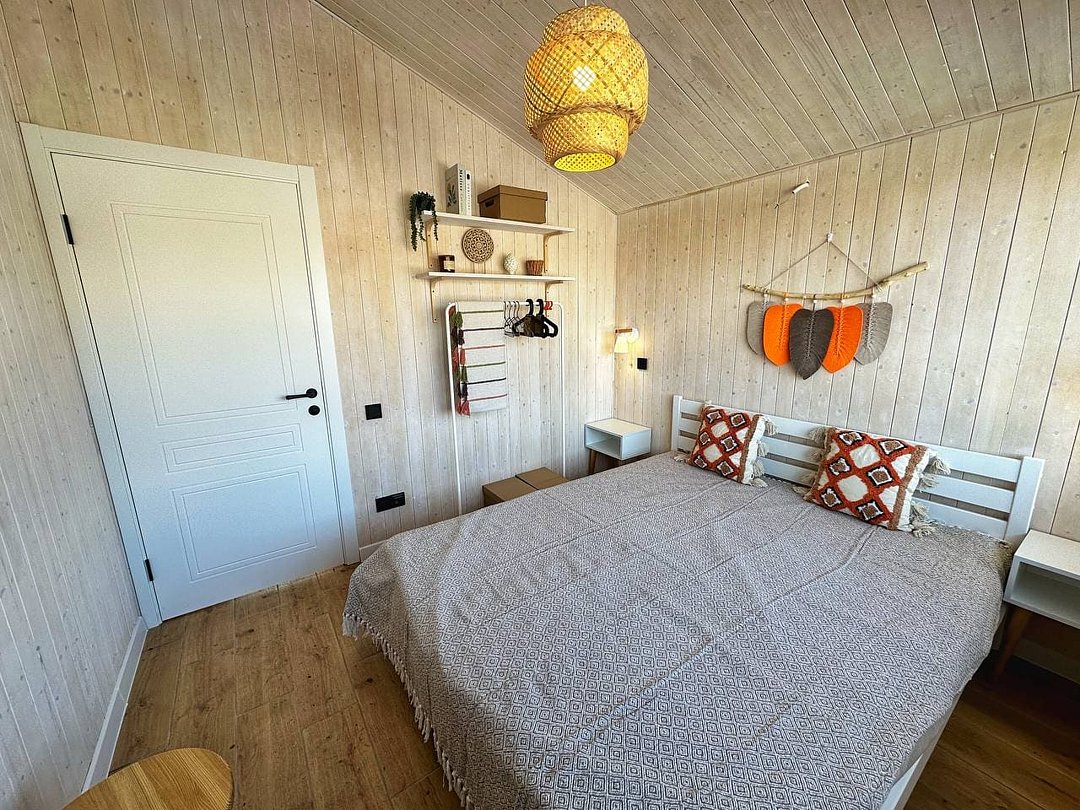 Это комфортный одноэтажный домик, в котором есть всё необходимое для комфортного отдыха: полностью оборудованная кухня, необходимая бытовая техника и посуда, светлая гостиная, уютные спальни, телевизор и удобная мебель.