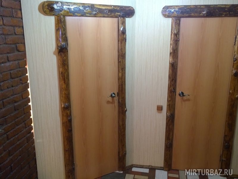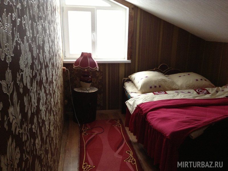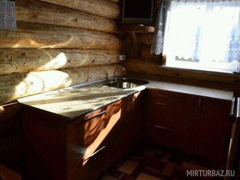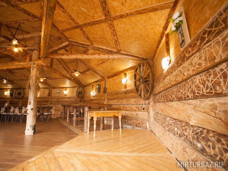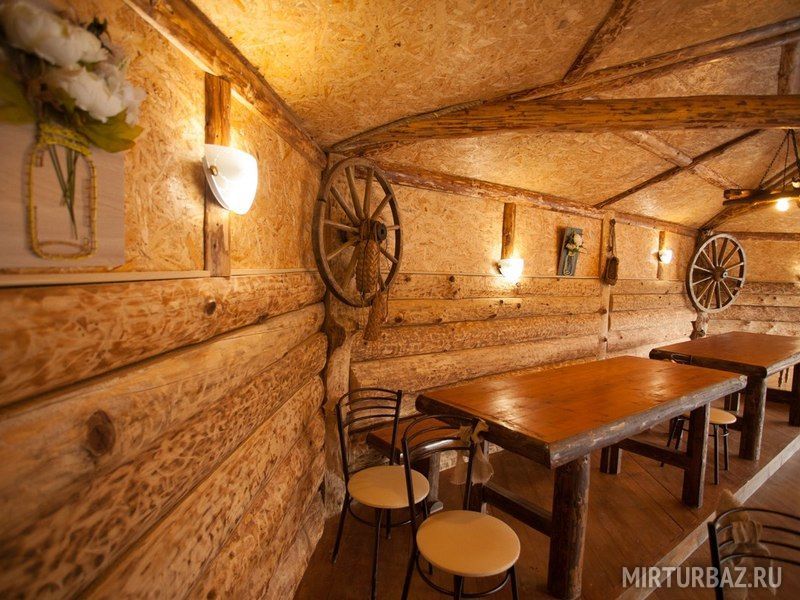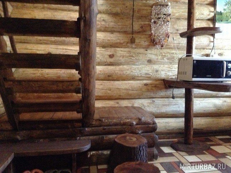 К размещению предлагается деревянный гостевой коттедж (двухэтажный). Внутри комната с русской печью и двуспальной деревянной кроватью, телевизор, кухонный уголок, барный столик, холодильник, микроволновая печь, чайник, посуда, душевая кабина, туалет, две изолированных спальни и одна открытая комната. В каждой из спален находятся деревянные двуспальные кровати.
