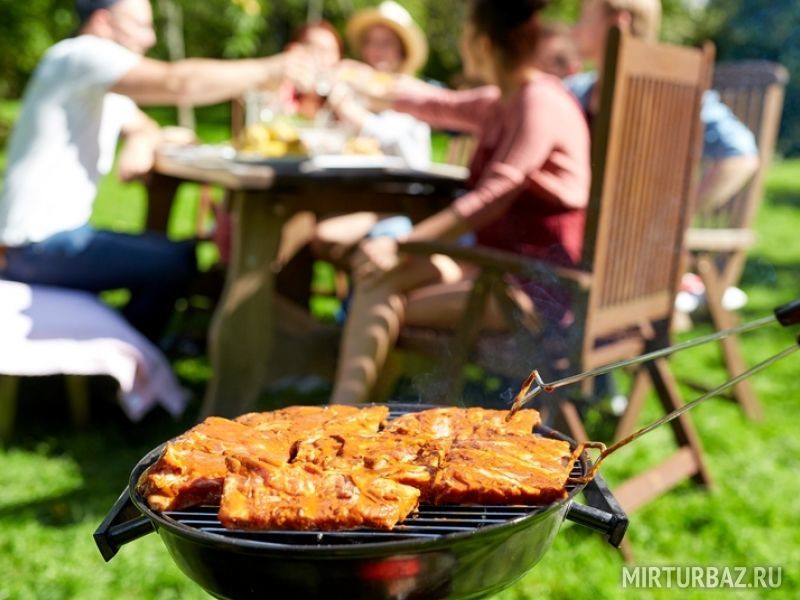 Гостям базы доступен барбекю и все необходимые принадлежности для приготовления мясных блюд.