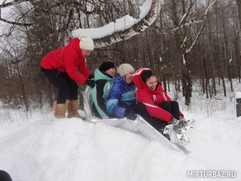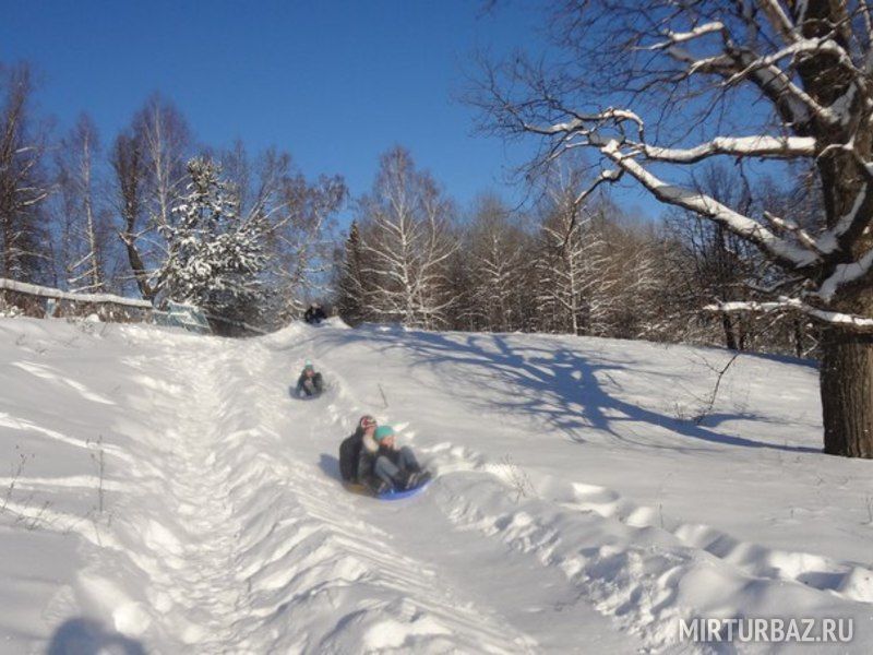 Зимой рядом с базой организуется ледяная горка, откуда можно покататься на тюбинге или по-старинке, со скользящей подкладкой.