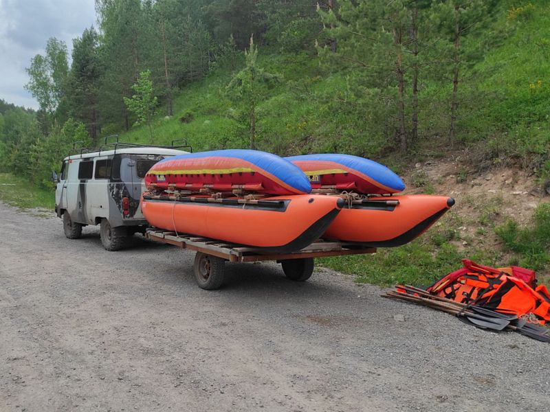 Снаряжение для сплава: Катамараны, весла, спасжилеты.