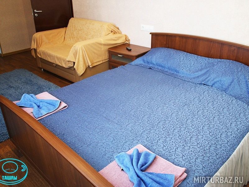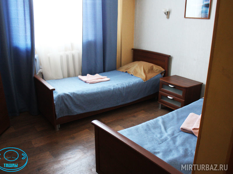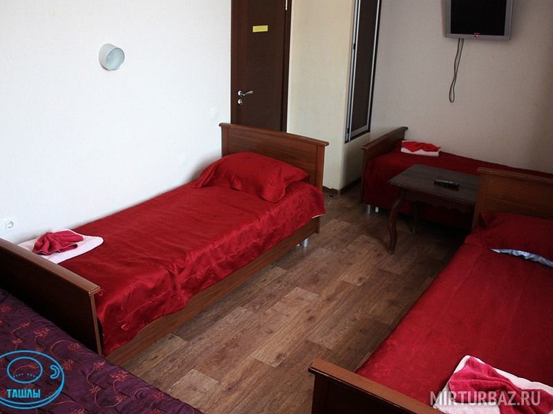 ТВ, 2 односпальных кровати. Санузел с душем общий на пять номеров
